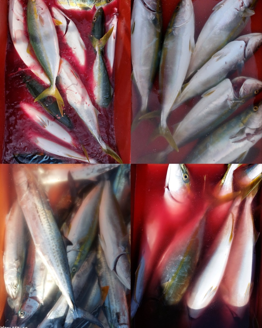 수요일 오전 찬바람과 함께 기름기와 통통하게 살오른 겨울방어가 마릿수 쿨러조황을 보이고 있네요.