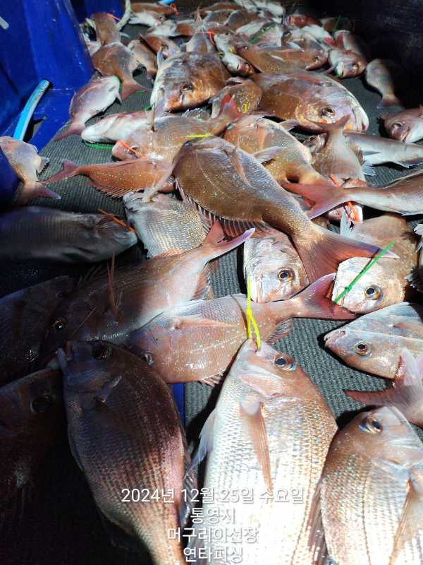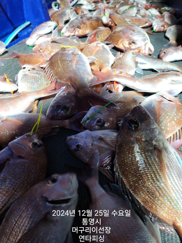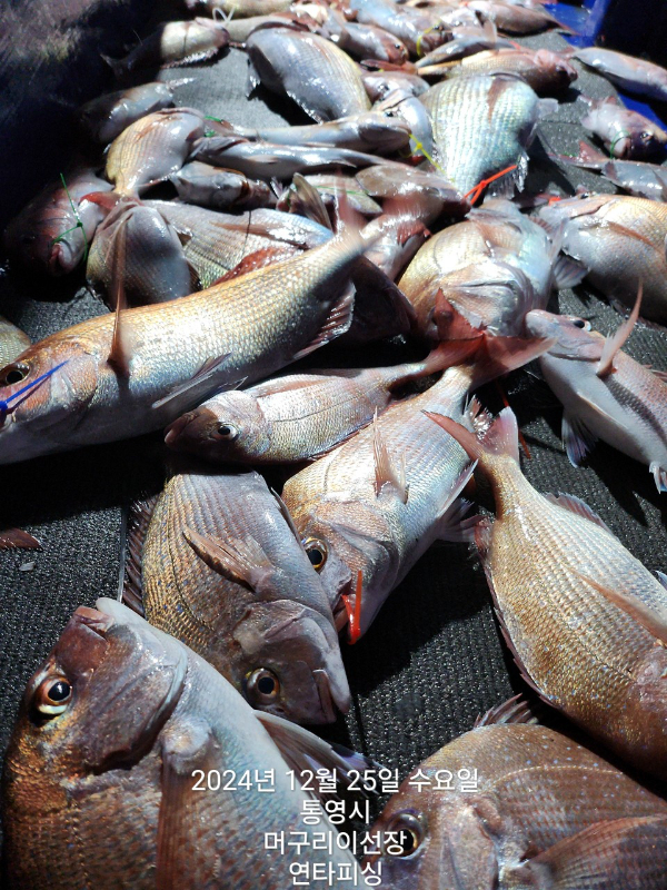 통영 머구리 이선장의 연타피싱)2024.12.25. 크리스마스에 참돔이 떼거리로 인사왔네요^^
