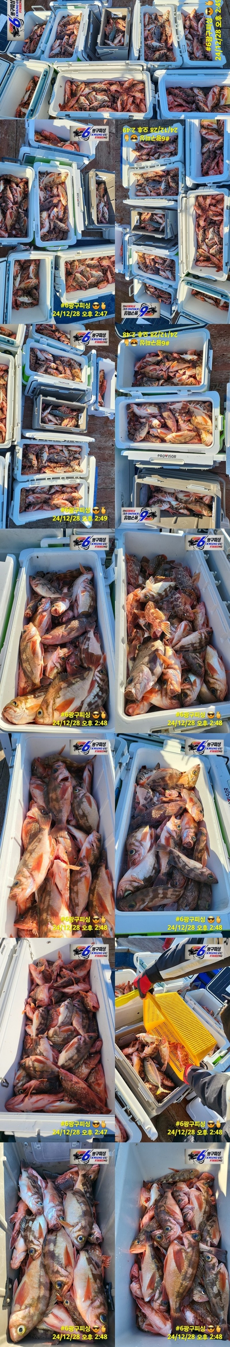 - 당일 조황을 올리셔야 합니다. - 지난 조황은 2일이내 미등록 조황만 가능합니다. - 이미 올린 조황을 붙여넣기하여 계속 등재하시면 중복조황에 해당합니다. - 당일 조황을 올리면서 이전 조황을 같이 올리면 중복조황에 해당합니다. - 조황없는 출조정보는 출조정보 게시판을 이용하시길 바랍니다. - 올린 글 삭제하고 다시 올려 상단에 올리려는 방법, 이용규칙 위반입니다. - 제목에 특수문자 사용하시면 안됩니다. (온점, 쉼표, 느낌표, 괄호, 물결만 허용) ☆ 공지사항에 '조황등재시 유의사항' 게시글을 꼭 확인하시고 조황작성 부탁드리며, 가장 기본적인 규칙이 지켜지지 않을 시 예고없이 글 삭제 및 이용정지 될 수 있음을 알려드립니다. |