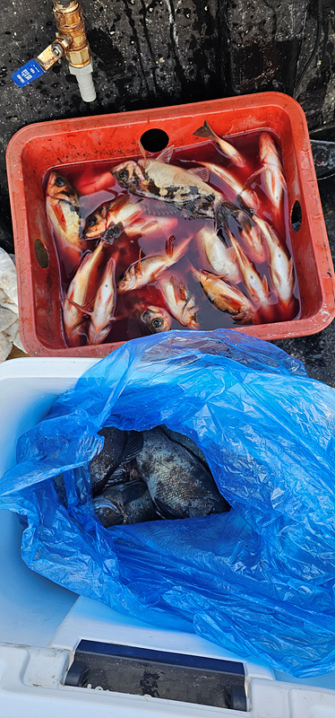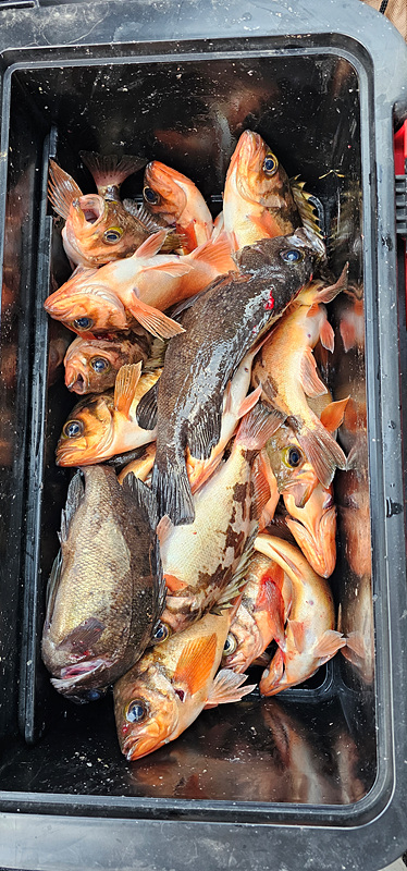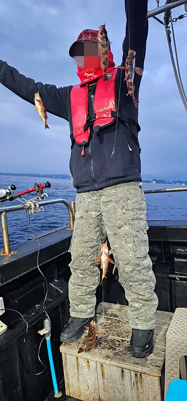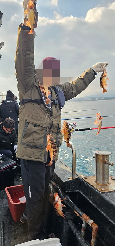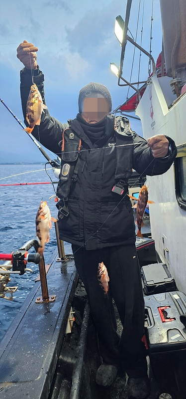 오늘도 열기 낚시 다녀왔습니다 첫 포인트부터 1번부터 5번까지 전원 줄타기를 보여 주네요 시작부터 30분동안 신나게 고기가 나오더니 그 다음부터는 뜨문 뜨문 나와 주네요 물속에는 어군이 엄청나게 많이 있는데... 이상하게 반응을 하지 않습니다 왜 그런가 했더니 조류가 없어서 배가 그자리에 딱 붙어 있습니다 그렇게 한동안 힘든 시간을 보내다가 볼락 왕사미가 한두 마리 얼굴을 보여 주더니 심심 하지 않게 반응을 해주네요 몇일동안 얼굴을 잘 보여 주지 않더니 지난번 보다 더 사이즈 좋은 녀석들이 나오기 시작 합니다 와 오늘은 완전 대박 입니다 입항 하기 1시간 전 갑자기 느나 느나 가 되어 버려 재빨리 쿨러 채우고 입항 하였습니다
