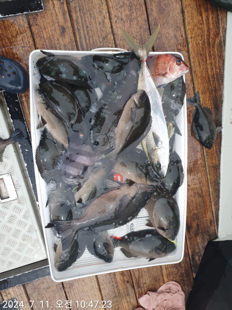 벵에돔 사이즈 좋습니다.거제 장승포 선상낚시 전문 "자바호"입니다. 4.99톤 정원 선장포함 12명 입니다.