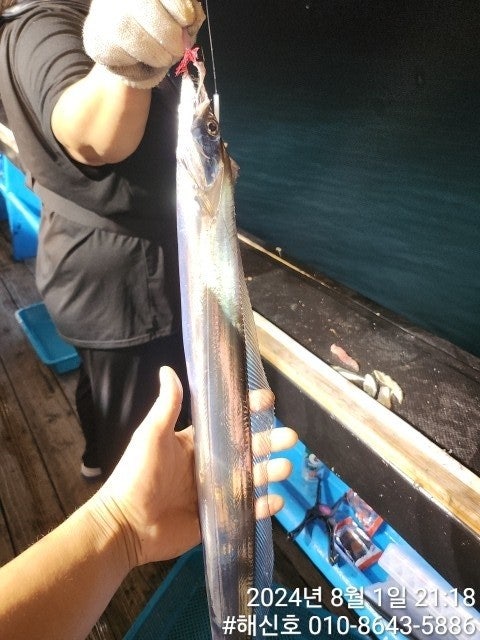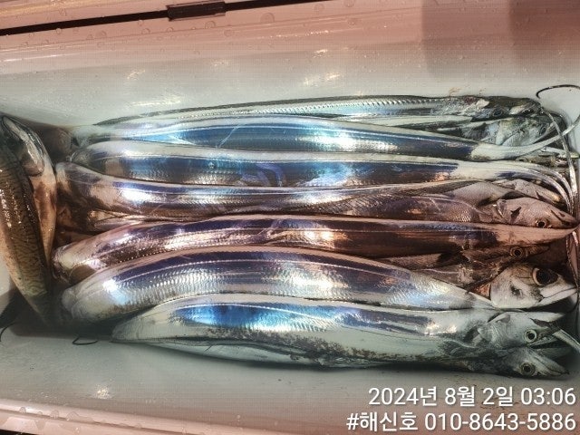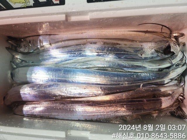 진해 삼포항 출발하는 한치낚시 전문출조점 "해신호"입니다. 역시~멀리 달린만큼 간밤에는 씨알 좋은 갈치들로 손맛을 제대로 본 것 같습니다. 보너스로 시장고등어와 대형 삼치까지도 나와 조사님들 손목 엘보가 올 정도로 끌고 가는 강력한 힘을 가진 갈치와 간잠 제대로 겨루기를 했습니다.