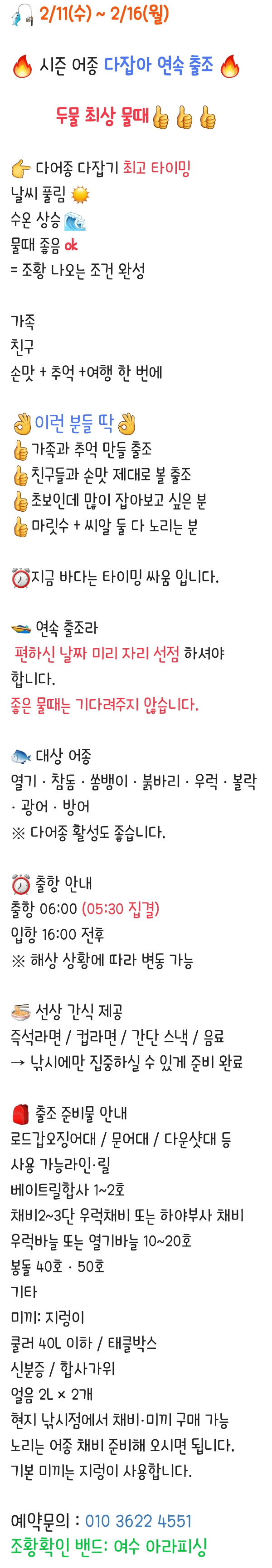 [여수,광양] 금.토요일 알쭈꾸미/ 일요일부터 다잡아 출조해요!
