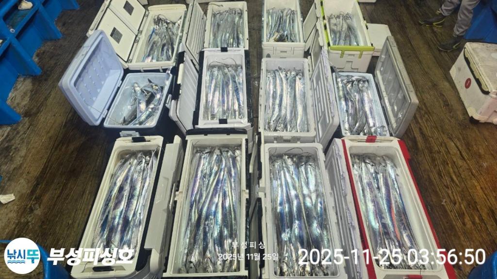 [부성피싱]초특급 명품갈치 한마리씩 올릴때마다 우와~~ 탄성이 나옵니다 평균이4지 쿨러조황