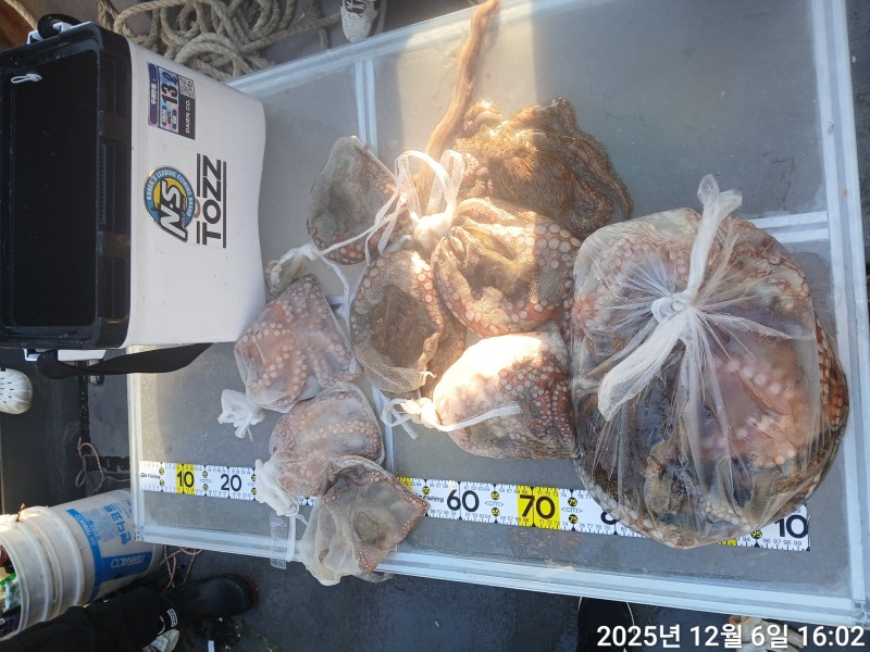 문어 고수님들 모시고 대물문어 노리고 전포인트.노려 봤습니다. 한구간당 두세마리가 반겨주네요.
