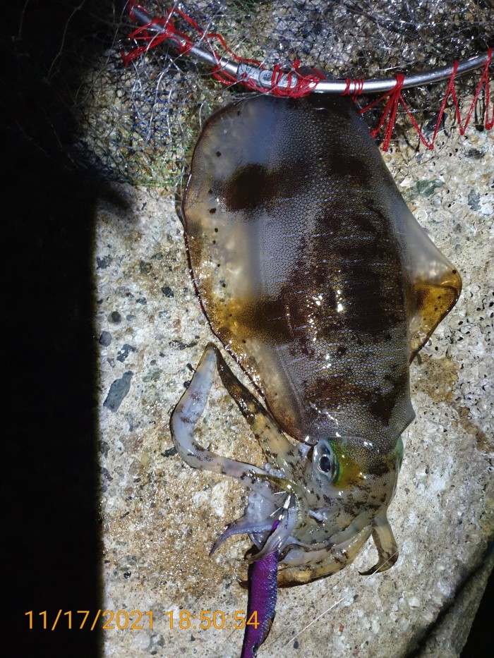 어제 무늬 오징어는 낱마리지만 대체로 씨알이 좋았으며 입질이 예민하여 릴링도중 빠지