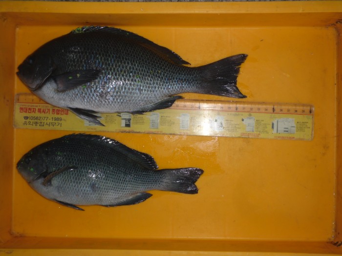 오전보다 오후에 여건이 조금 나아졌고 낱마리 벵에돔 조과에 졸복 성화.