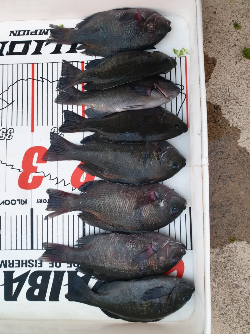 어제는 바람은 얌전한편이었고 낮에 가끔 소나기가 불편했습니다.벵에돔은