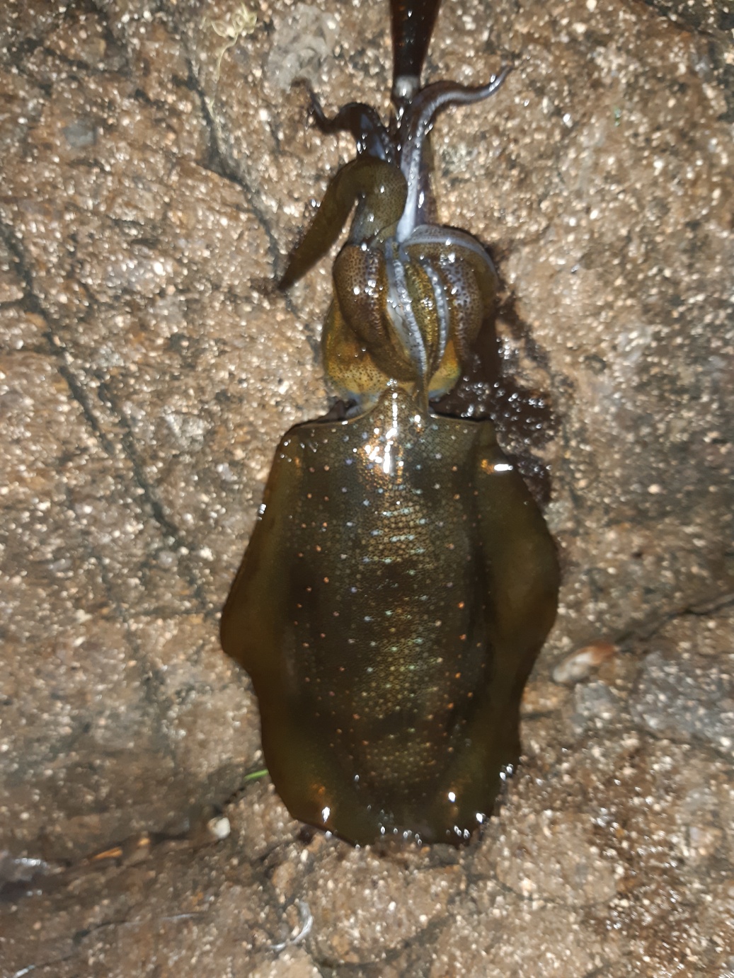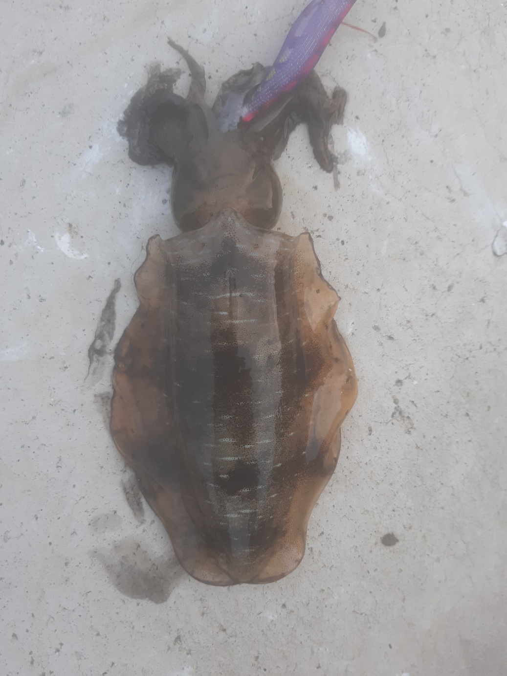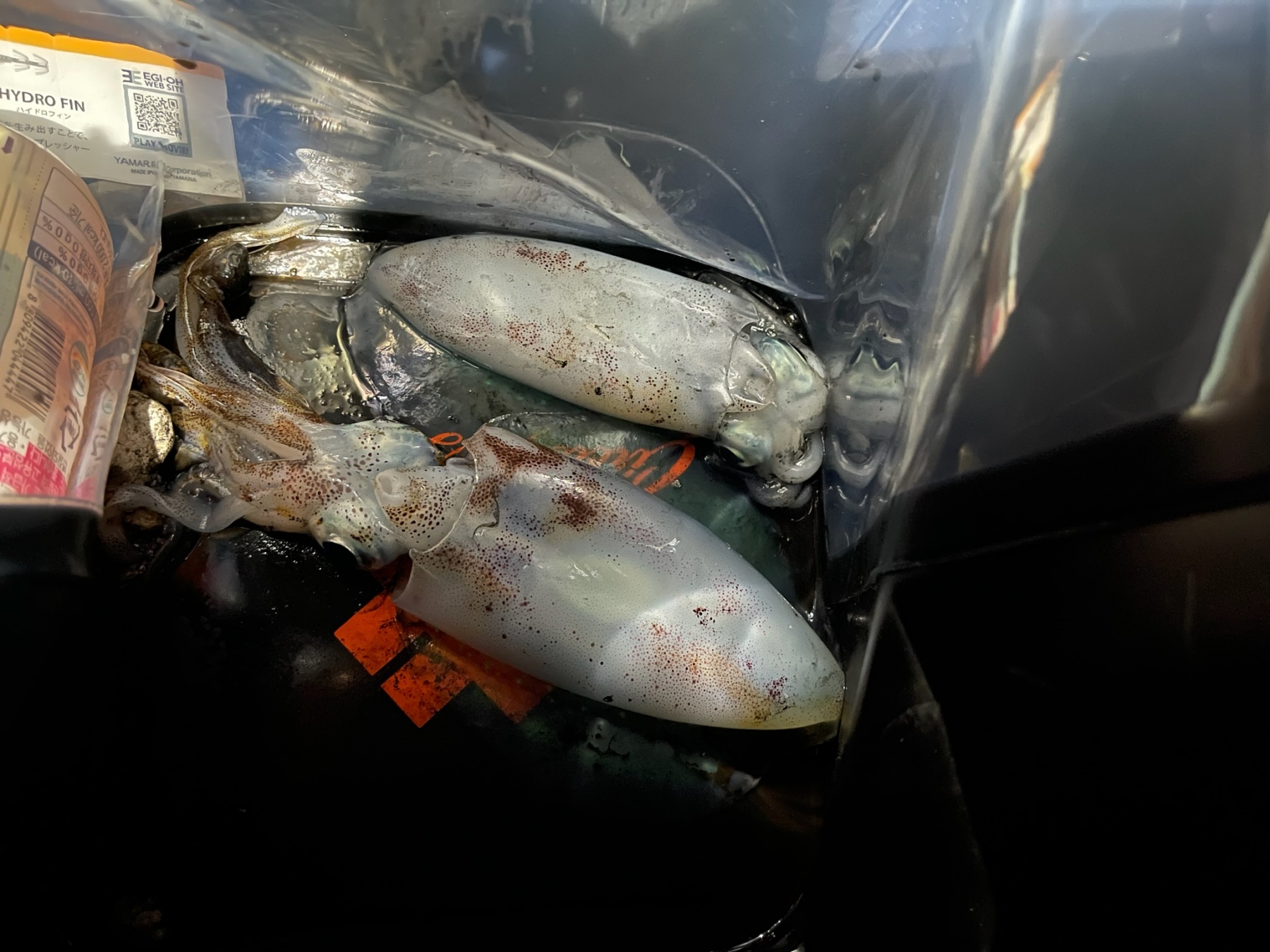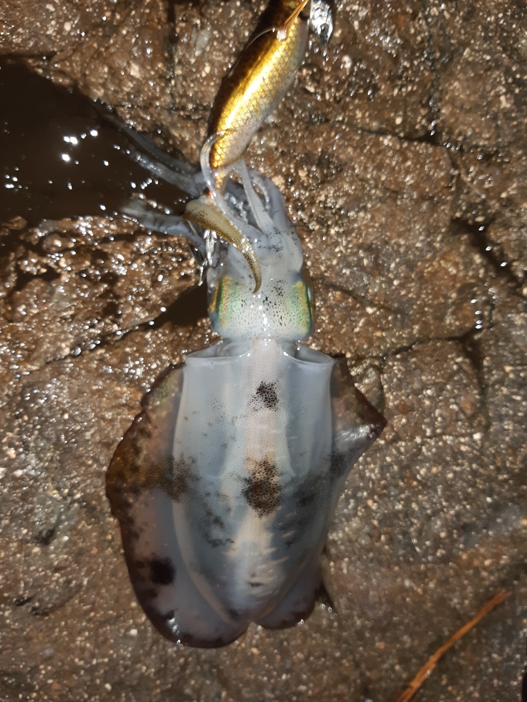 어제도 감포권 무늬 오징어는 잔씨알이 대부분이었고 고구마급은 낱마리였