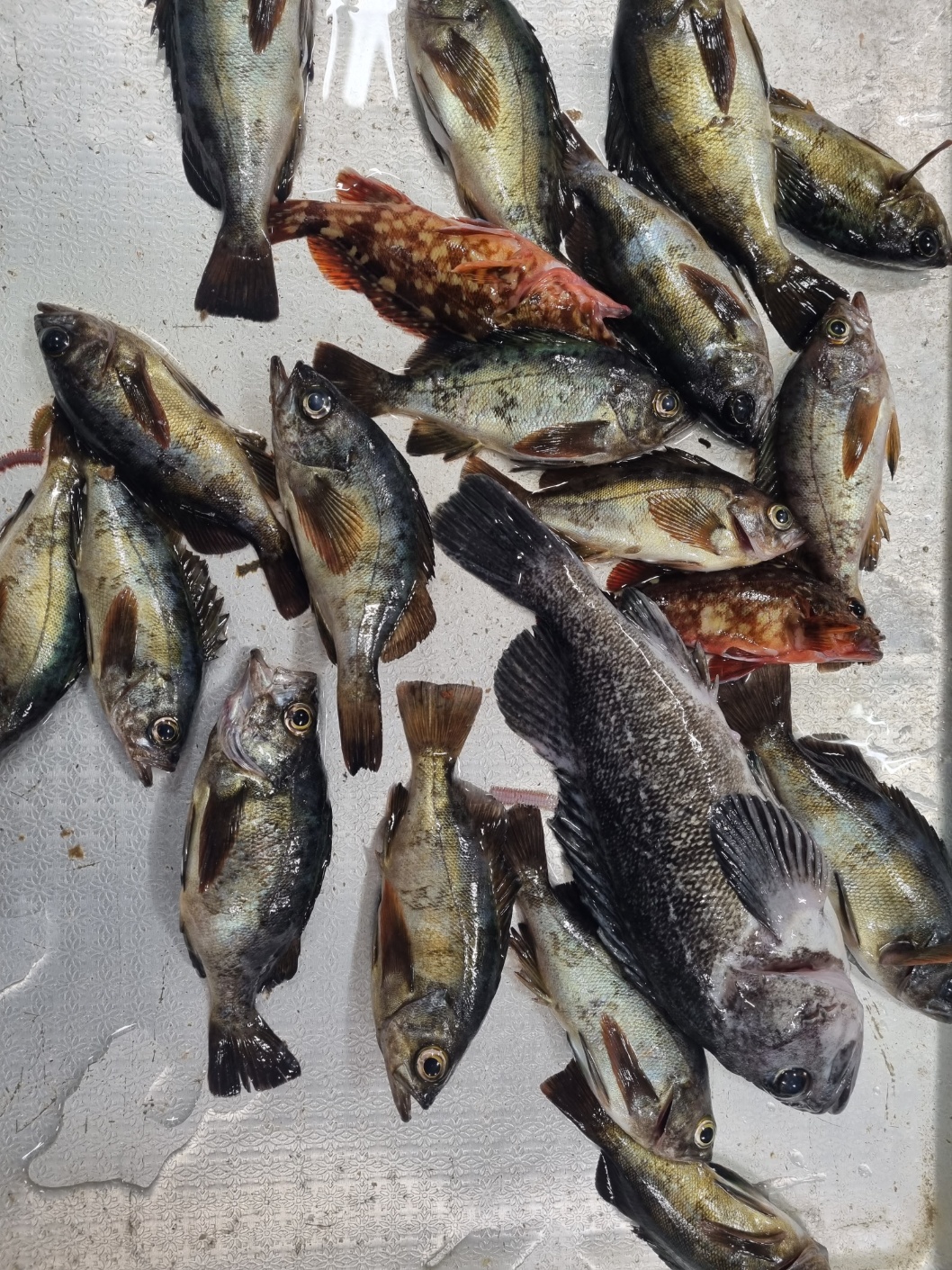 손님고기로 덩치좋은 우럭이 낱마리로 모습을 보이기도 합니다.