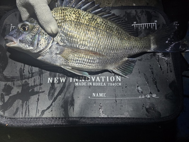 감성돔은 지금 시기에는 홍합등 갑각류 섭취를 하는 시기라 방파제 가장
