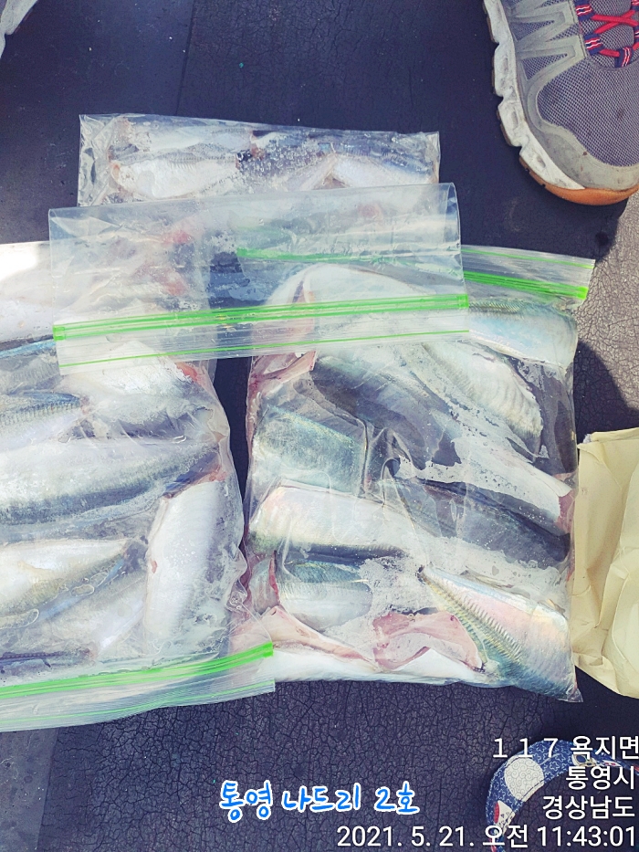 전날 잡은 전갱이들은 잘 손질해서 꽁꽁~