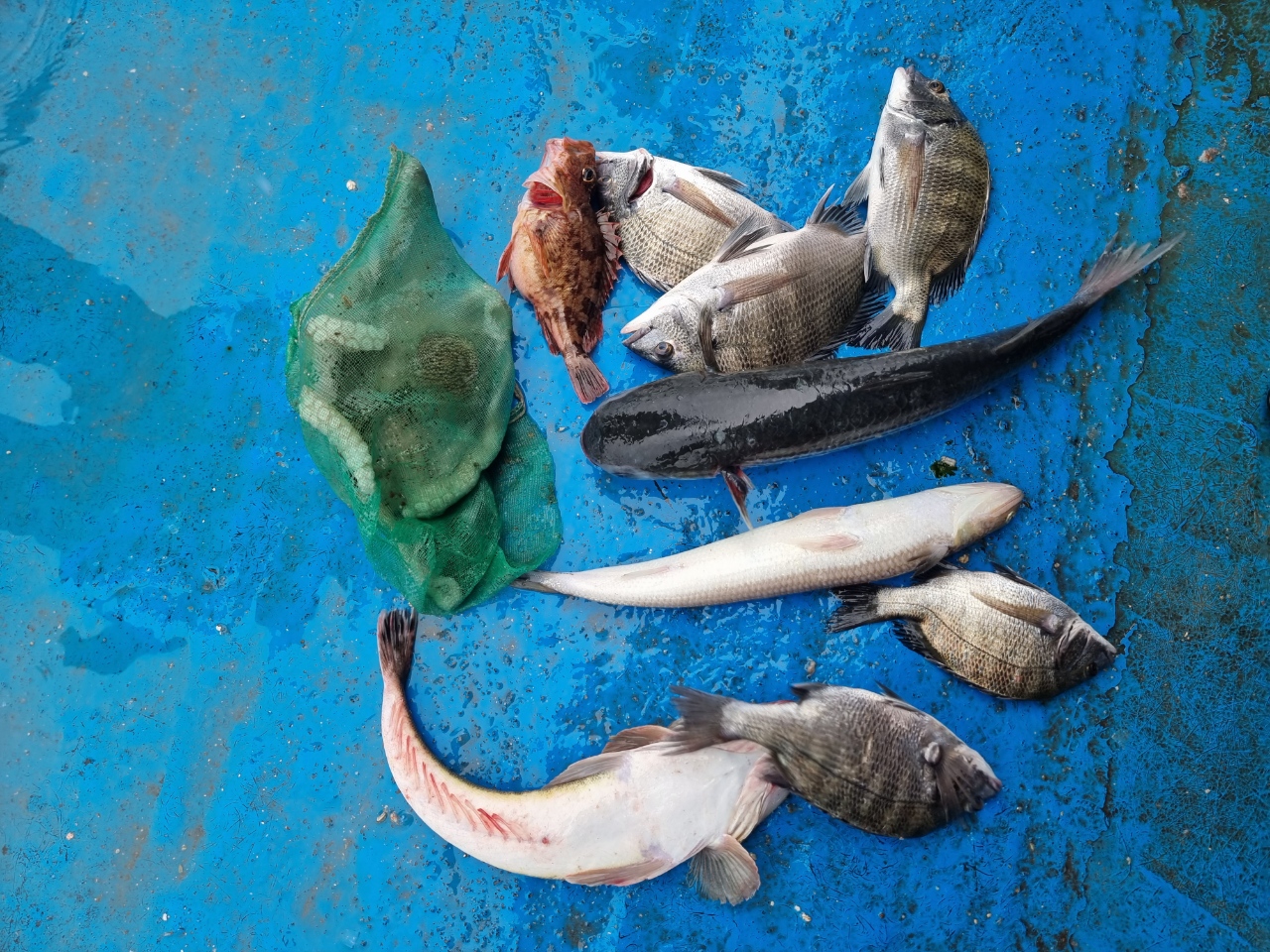 오늘 낮 좌대에서도 문어, 갑오징어, 숭어, 감성돔, 양태 등 다양하게 많이 잡아가셨습니다.
