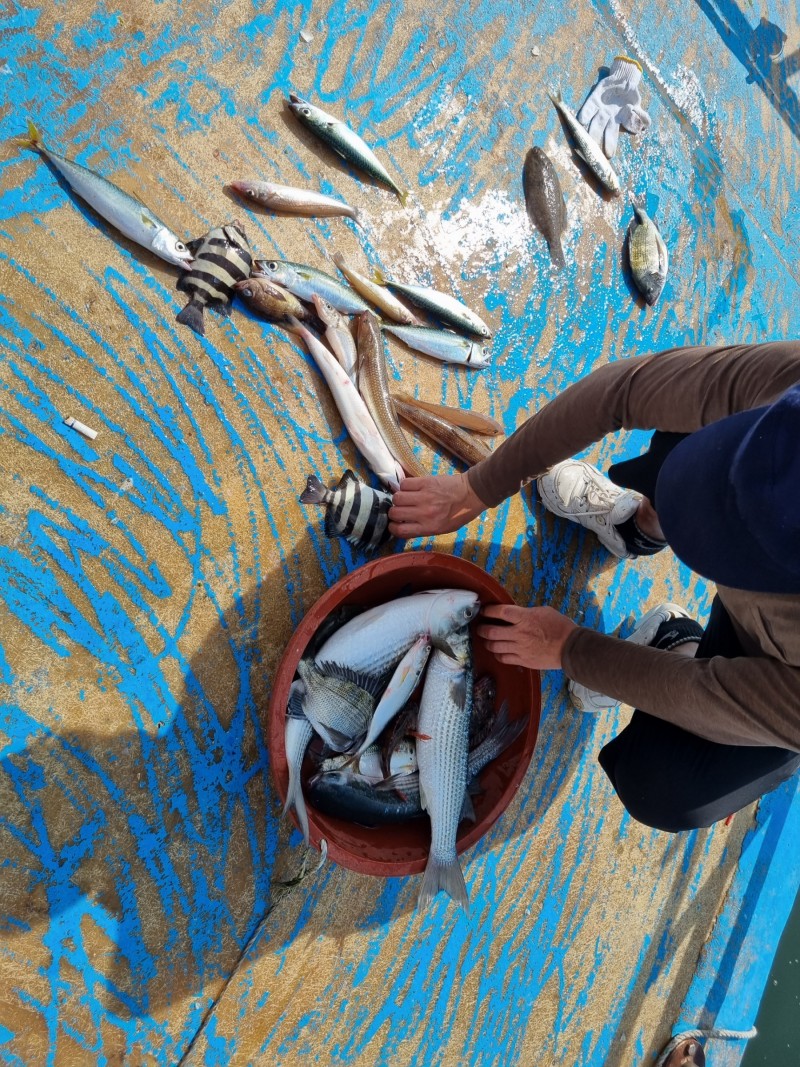 오늘 좌대에서 감성돔, 숭어, 돌돔, 고등어, 보리멸, 전어, 쏨뱅이, 문어 등