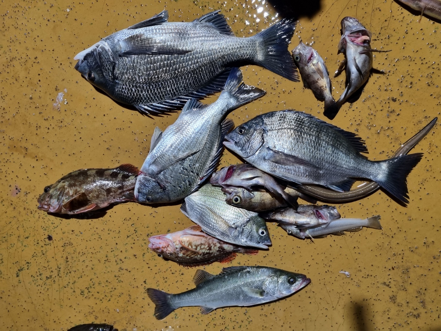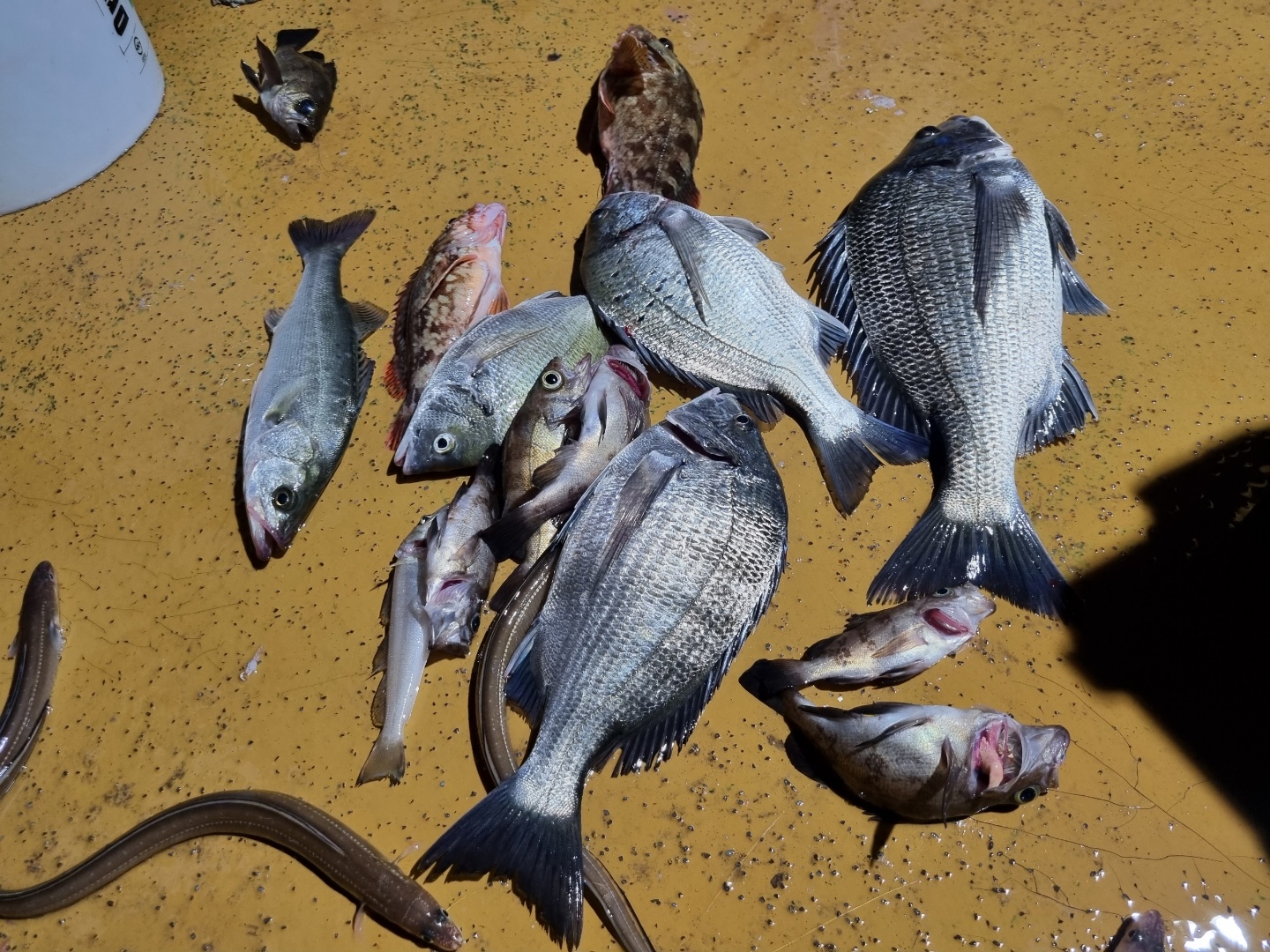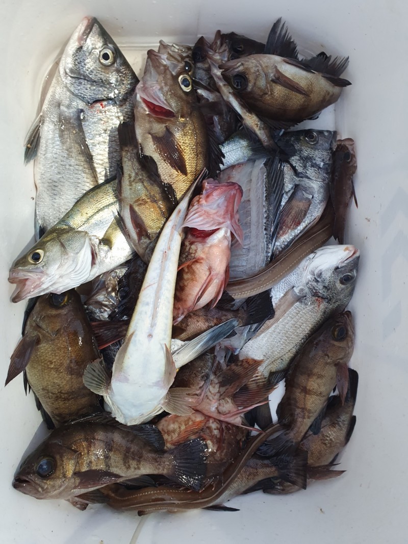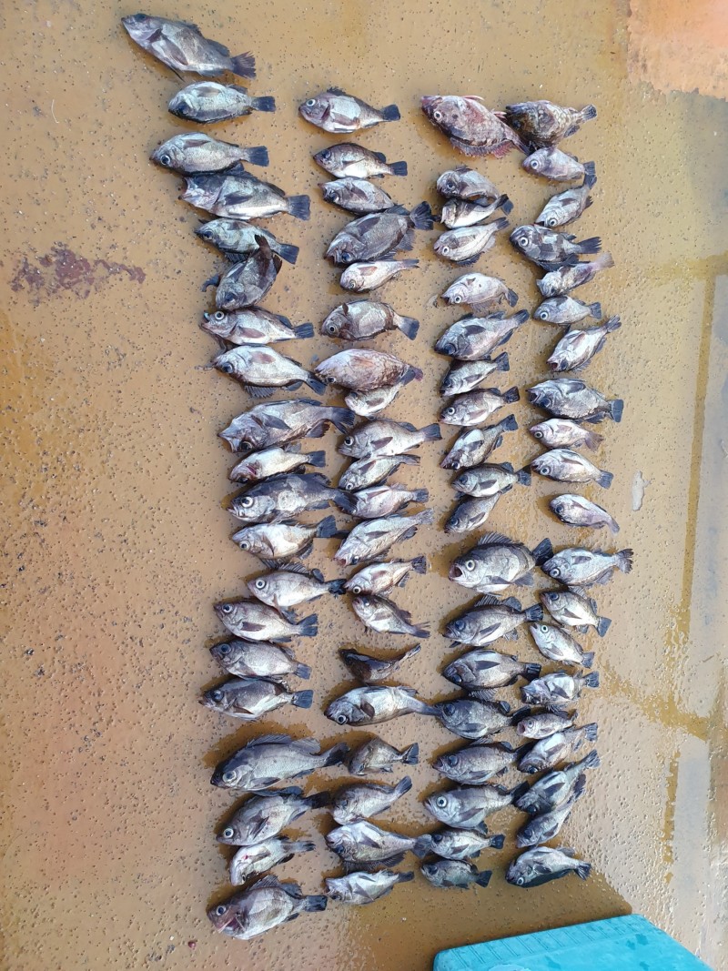 전날 야간 해상펜션에서 나온 볼락, 감성돔, 장어, 농어, 노래미, 등 다양한 어종이 올라왔으며,