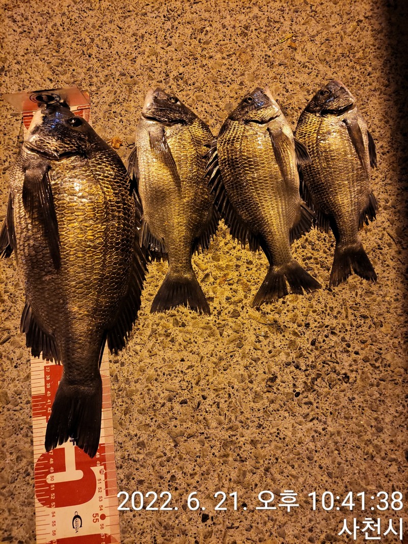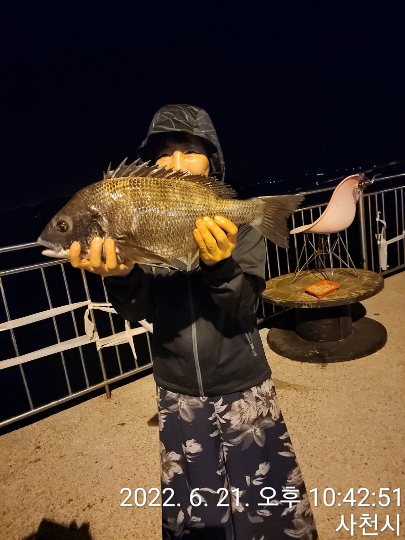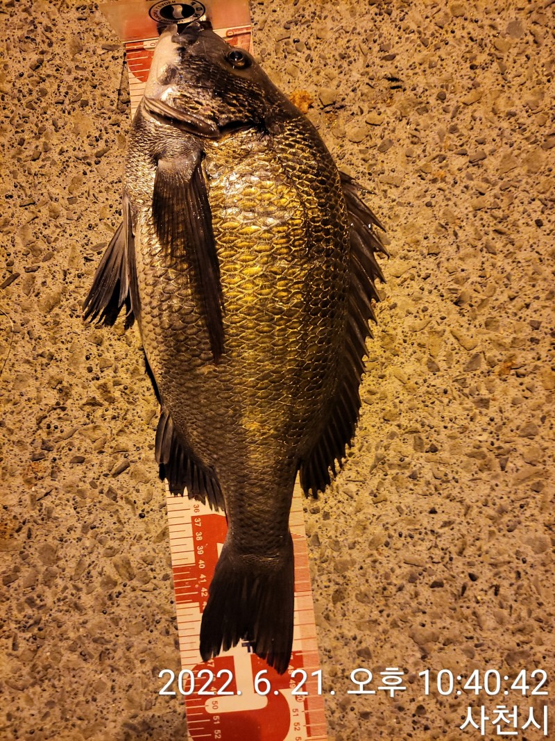 야간 방파제 에서 흘림으로 잡은 감성돔 48cm ,