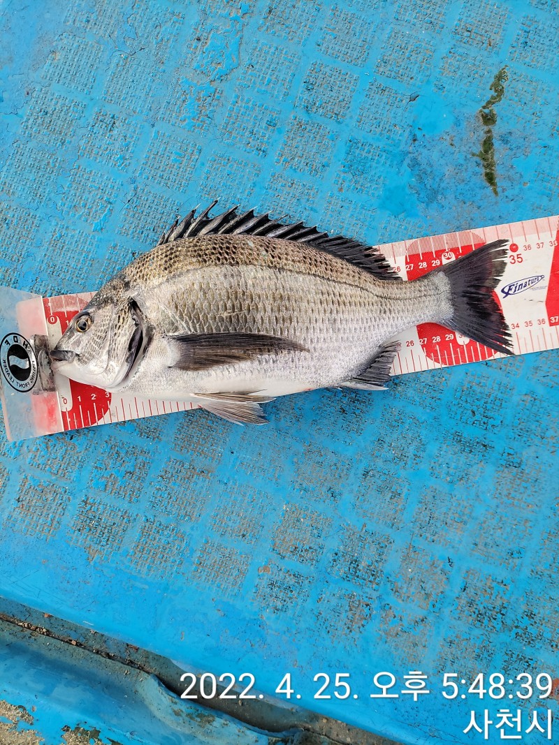 오늘 좌대에서 35cm 감성돔 한마리 35cm 이하 두마리 잡혔습니다.