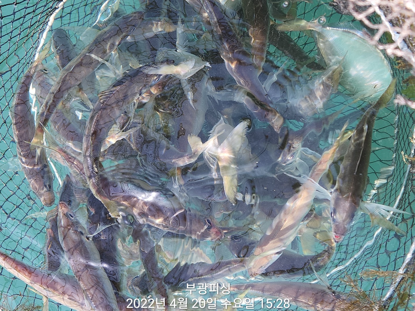 ※양식장 그물안에 바늘을 담궈서 고기를 잡는 행위 적발시 이유불문하고 바로 퇴장조치 하겠습니다.