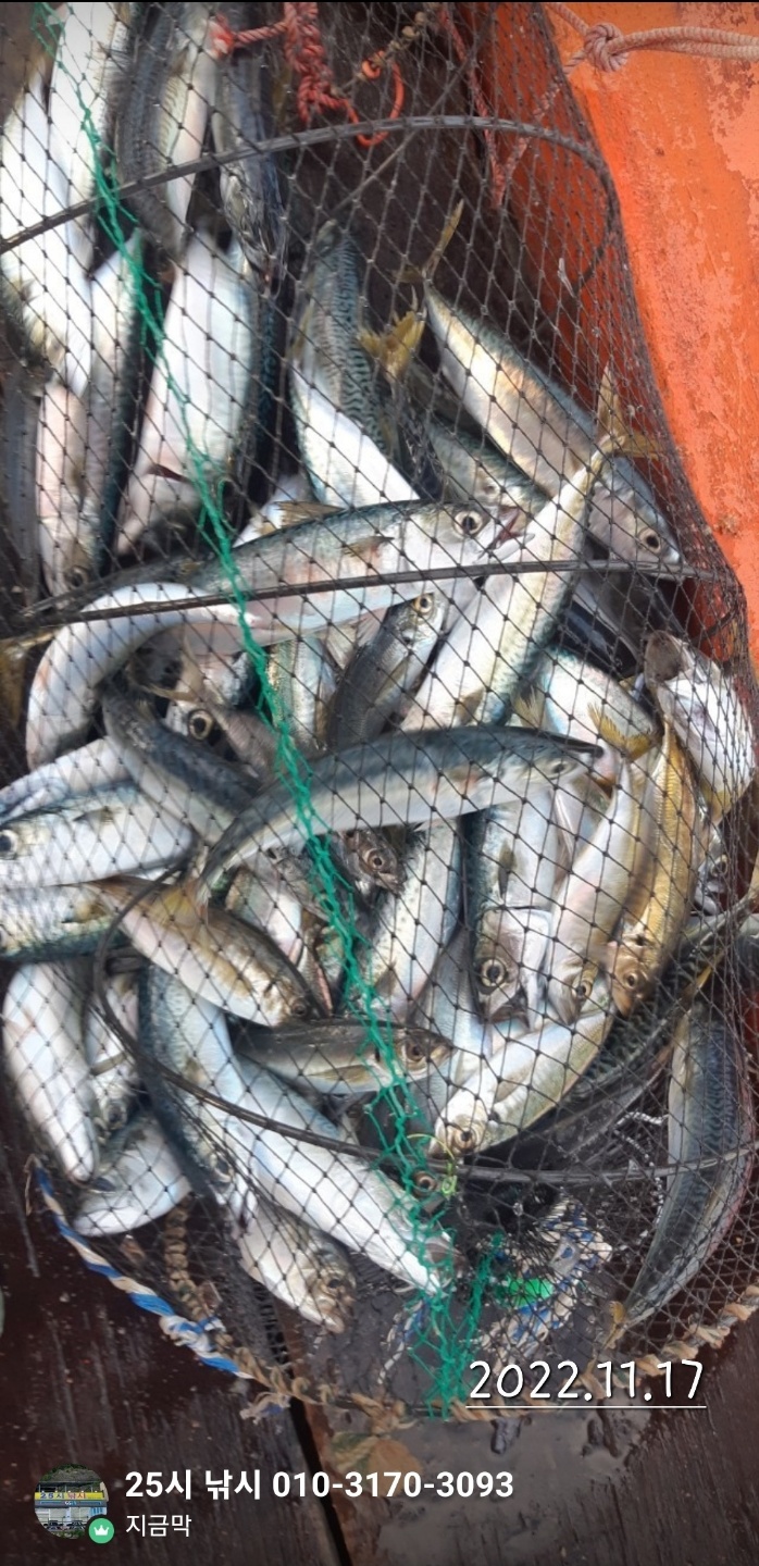 11월 17일 목요일 주간 2인 시장급 고등어 200마리~! 야간 갈치 새벽 4시경 피딩 2인 마리수!
