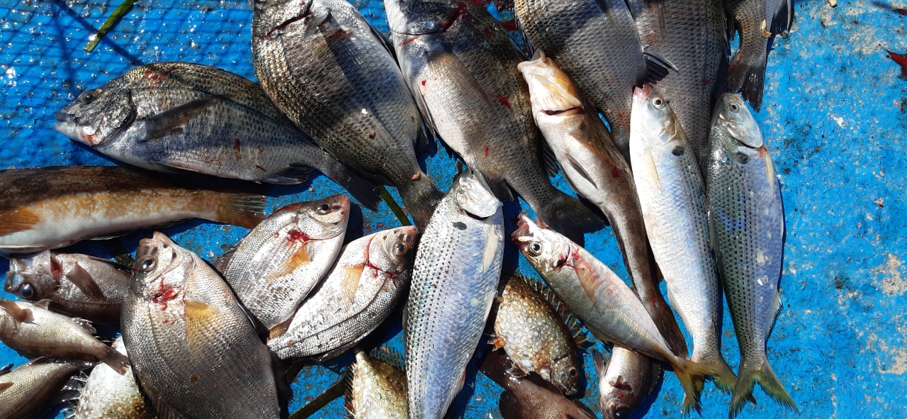 오늘 좌대에서 감성돔, 전어, 도다리 등이 많이 올라왔습니다.
