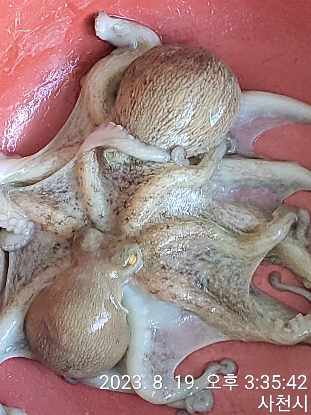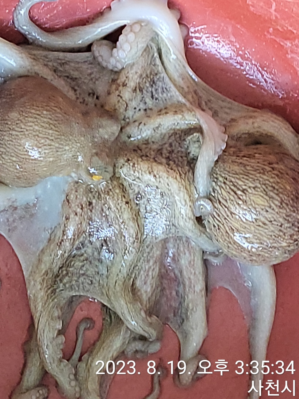 좌대에서 문어 등이 많이 올라왔습니다.