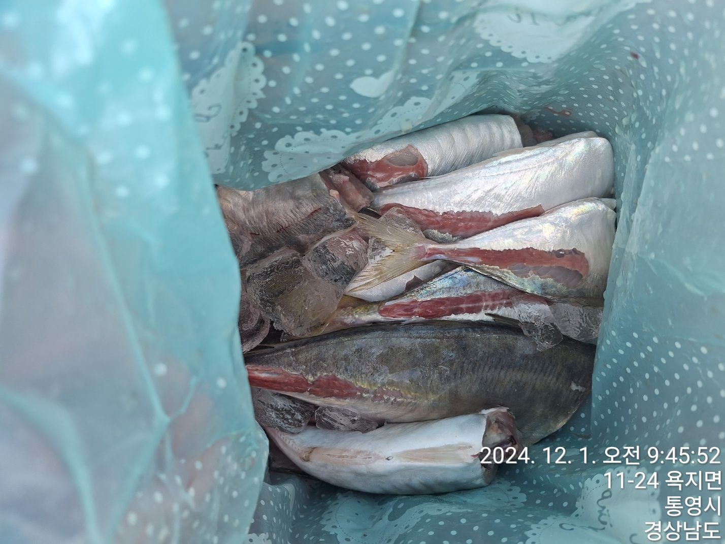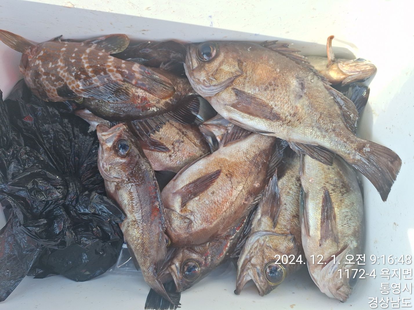 여러어종들 망태기 가득가득..오징어까지...