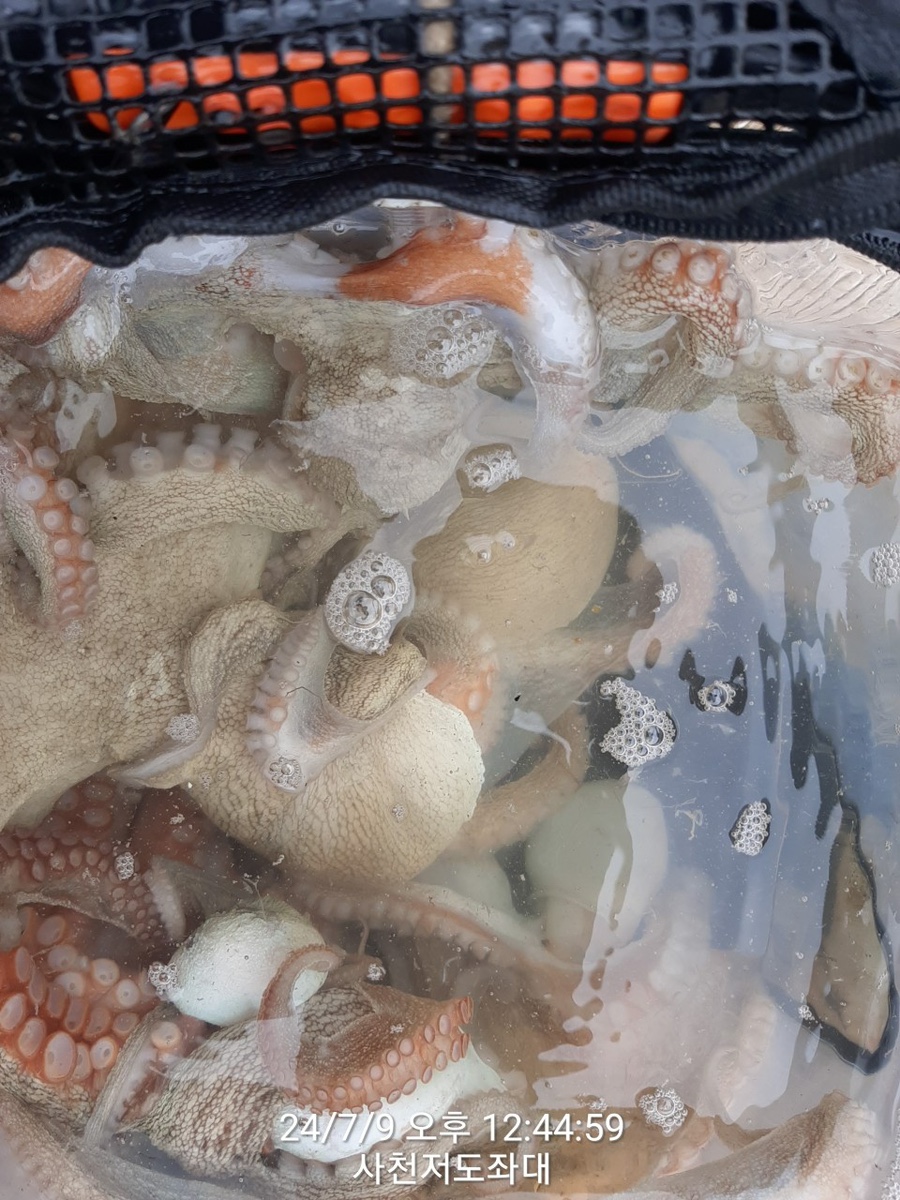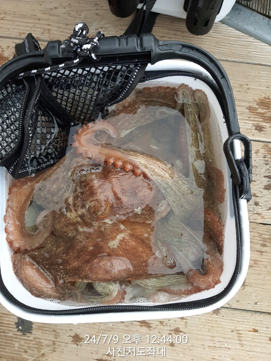 올라왔습니다 좌대서도 문어를 많이 잡은분은