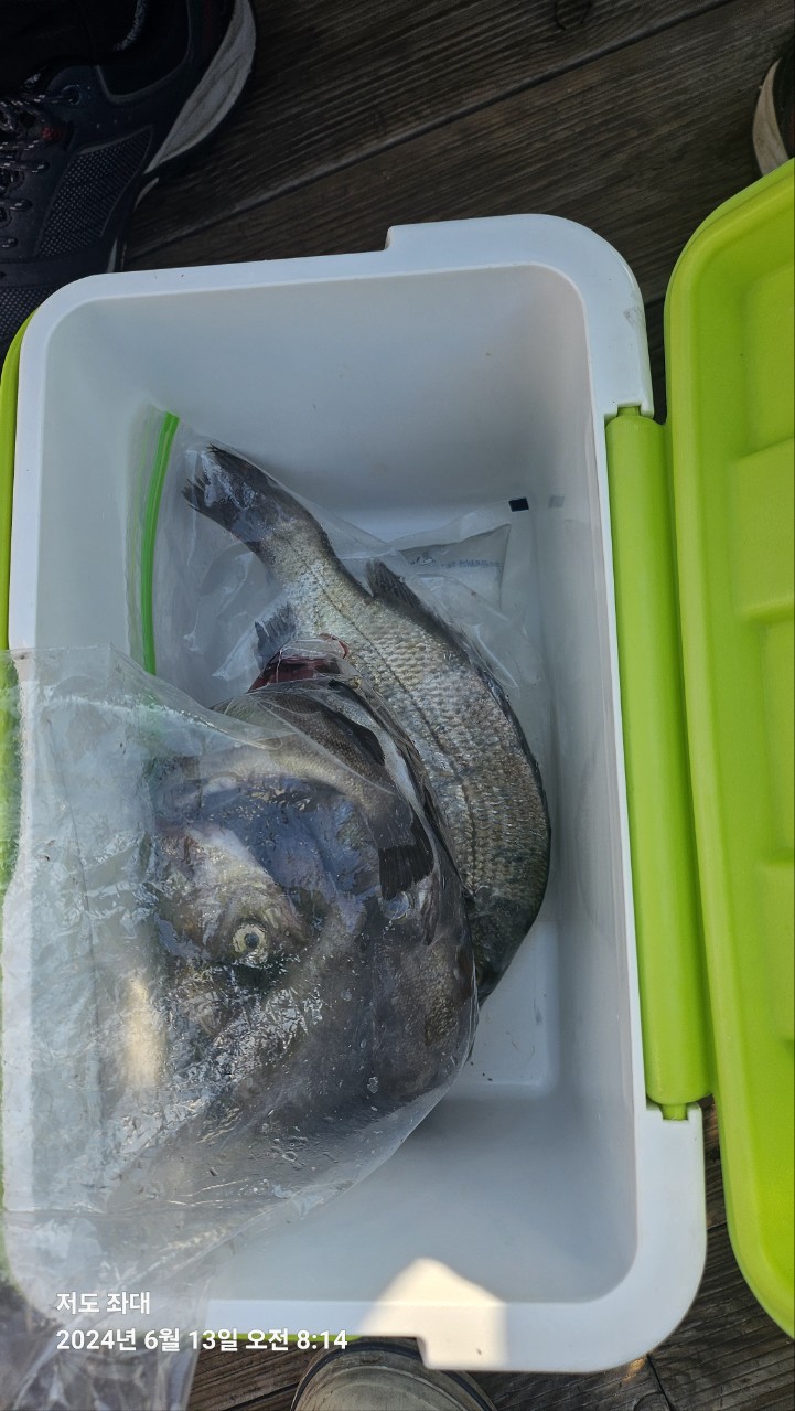 어제 좌대에서는 잔씨알의 감성돔이 여러수