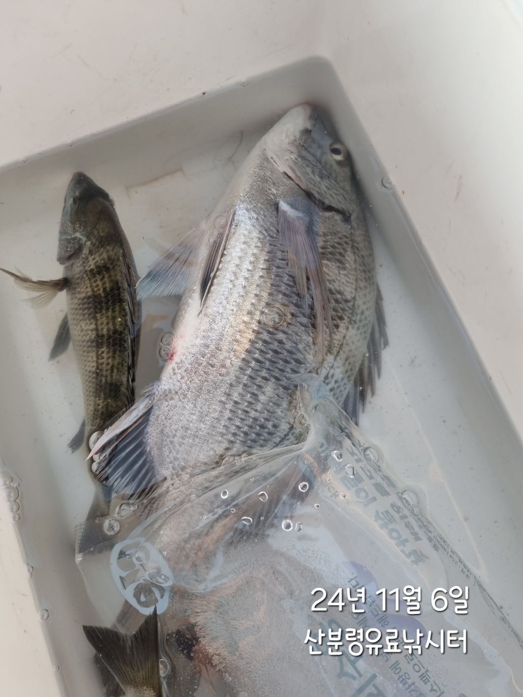 좌대에서 감성돔이 나왔네요~