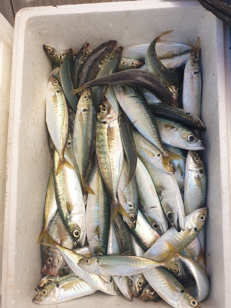 한팀은 고등어 , 전갱이 80마리