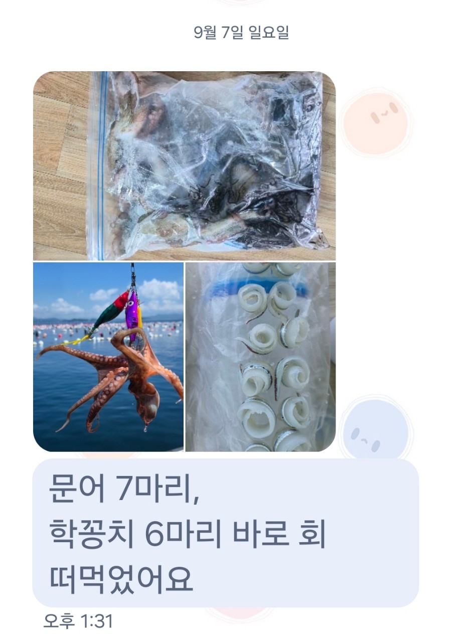 9월 7일 일요일 주간 문어와 학꽁치, 고등어2025년 9월 7일 일요일 주간