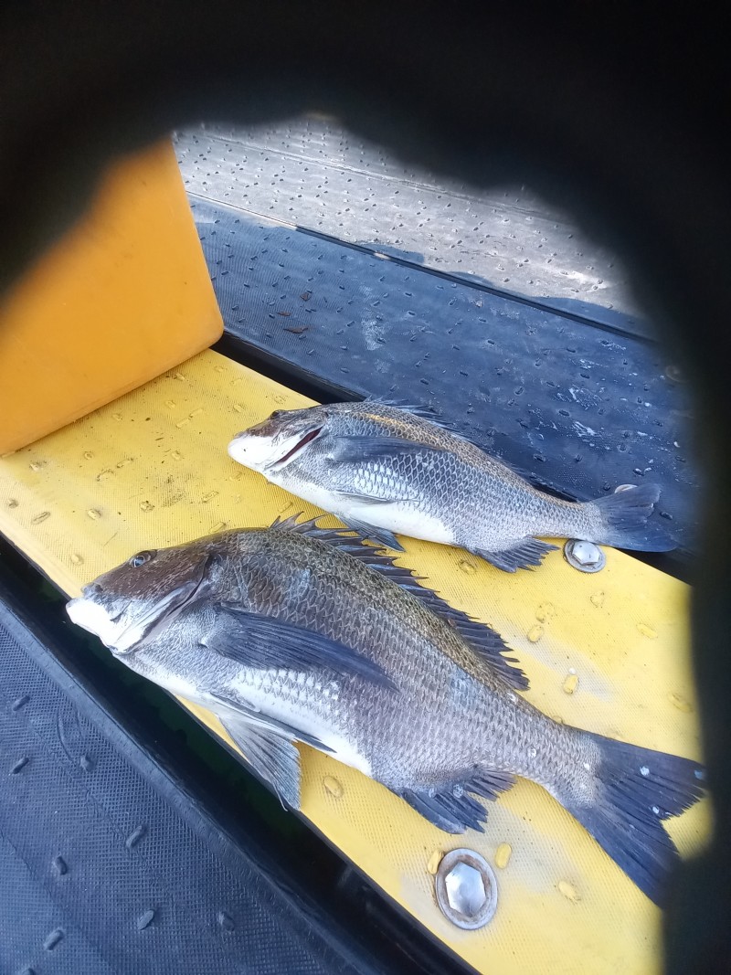좌대에서 감성돔이 올라왔습니다.