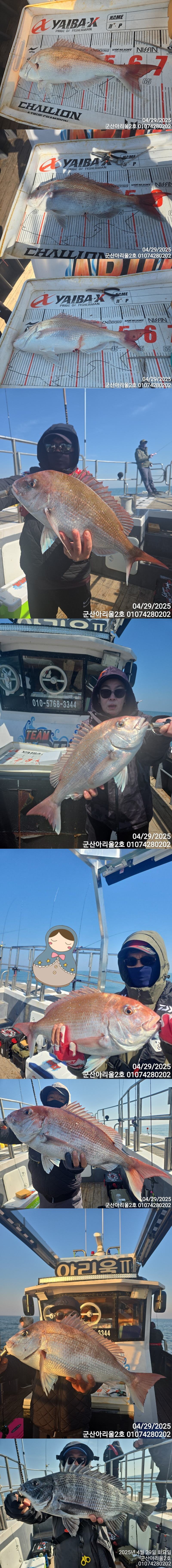 | 4월29일 군산 아리울2호 참돔 타이라바 조황 소식입니다. |