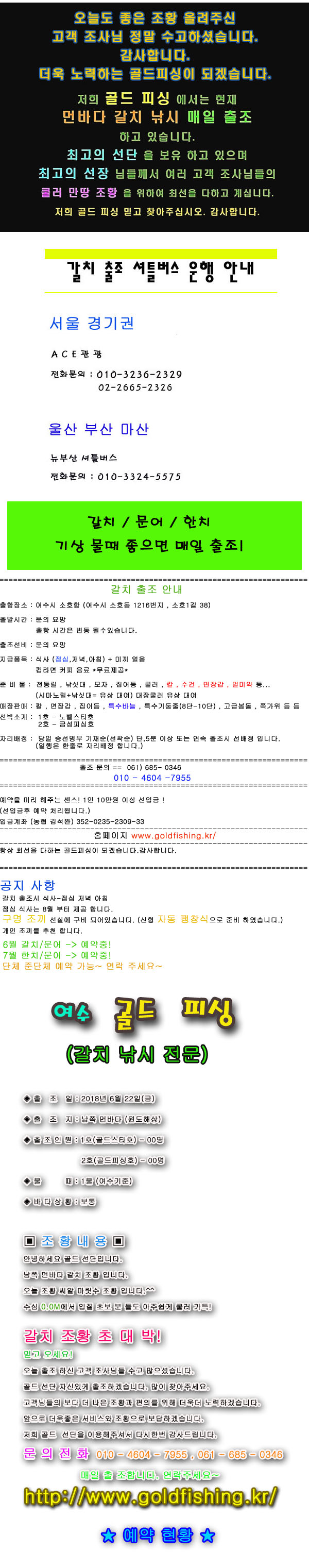 출항지 : 여수,광양 / 출조지 :