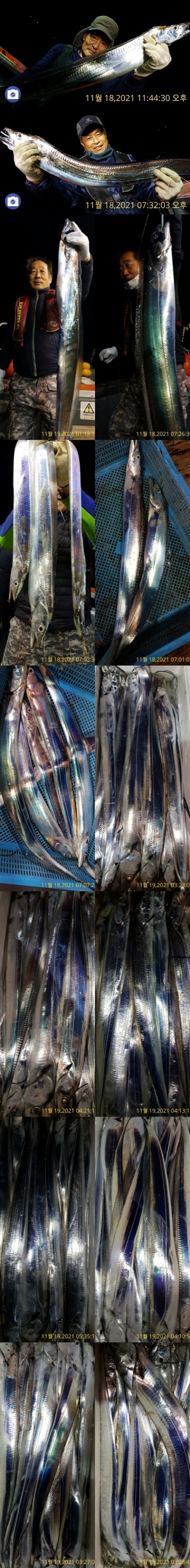 씨알좋은 갈치들 출동~~~~~쿨러조황~~~~~~밤새 낚시하시느라 고생하셨습니다 ~~~~계속달립니다~~~~(일요일예약가능)