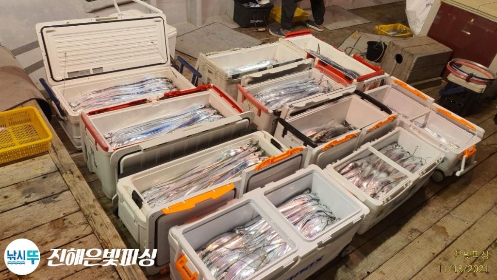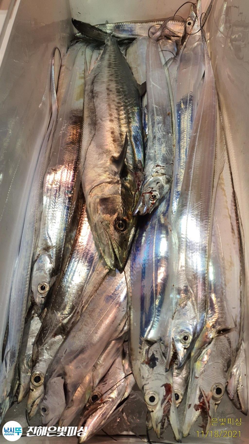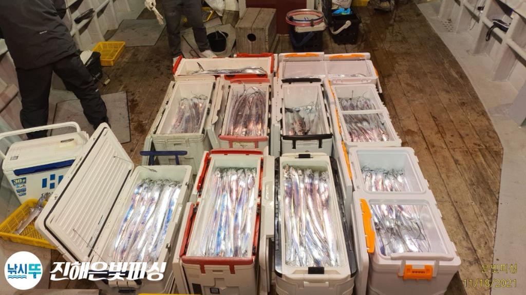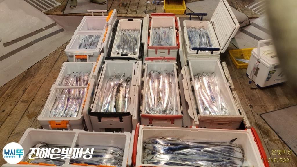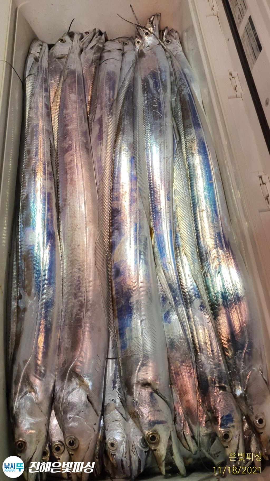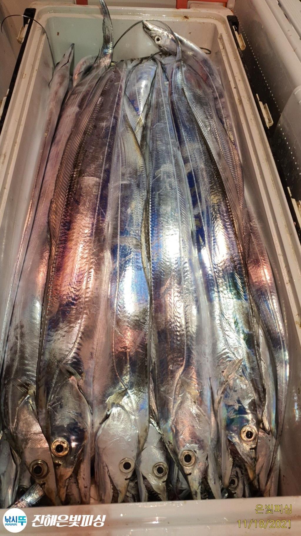은빛피싱 11월 17일 출조 먼바다 갈치 조황입니다. 초반부터 대치들나오며 기분좋게 스타트. 갈치가 1타 10피까지 올라오며 철수할때까지 쭉 입질이 이어졌습니다. 풀치는 보기 힘들정도로 갈치 평균싸이즈가 아주 좋았으며 3지~6지까지 쿨러가득채우신 조사님들도 계시네요. 은빛피싱 찾아주신 조사님들 수고많으셨습니다. 이번주 쭉 먼바다 갈치 출조합니다. 목.금.토.일 자리여유 있습니다 예약 01047494724 전화주세요 | |||||||||||||||||||
