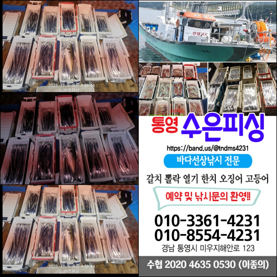 안녕하세요?통영 수은호입니다 통영 선상 낚시전문 수은호입니다 갈치, 한치,오징어, 볼락,열기 고등어 선상 낚시하실분은 수은호로 오십시요 최선을 다하겠습니다 감사합니다