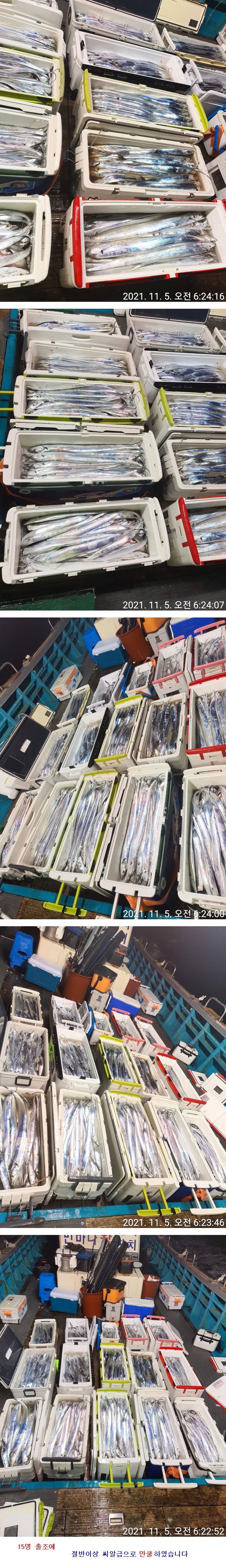 입항시간: 오전 7시 00분 전후(일찍 포인트 도착 - 제일 늦게 철수합니다)