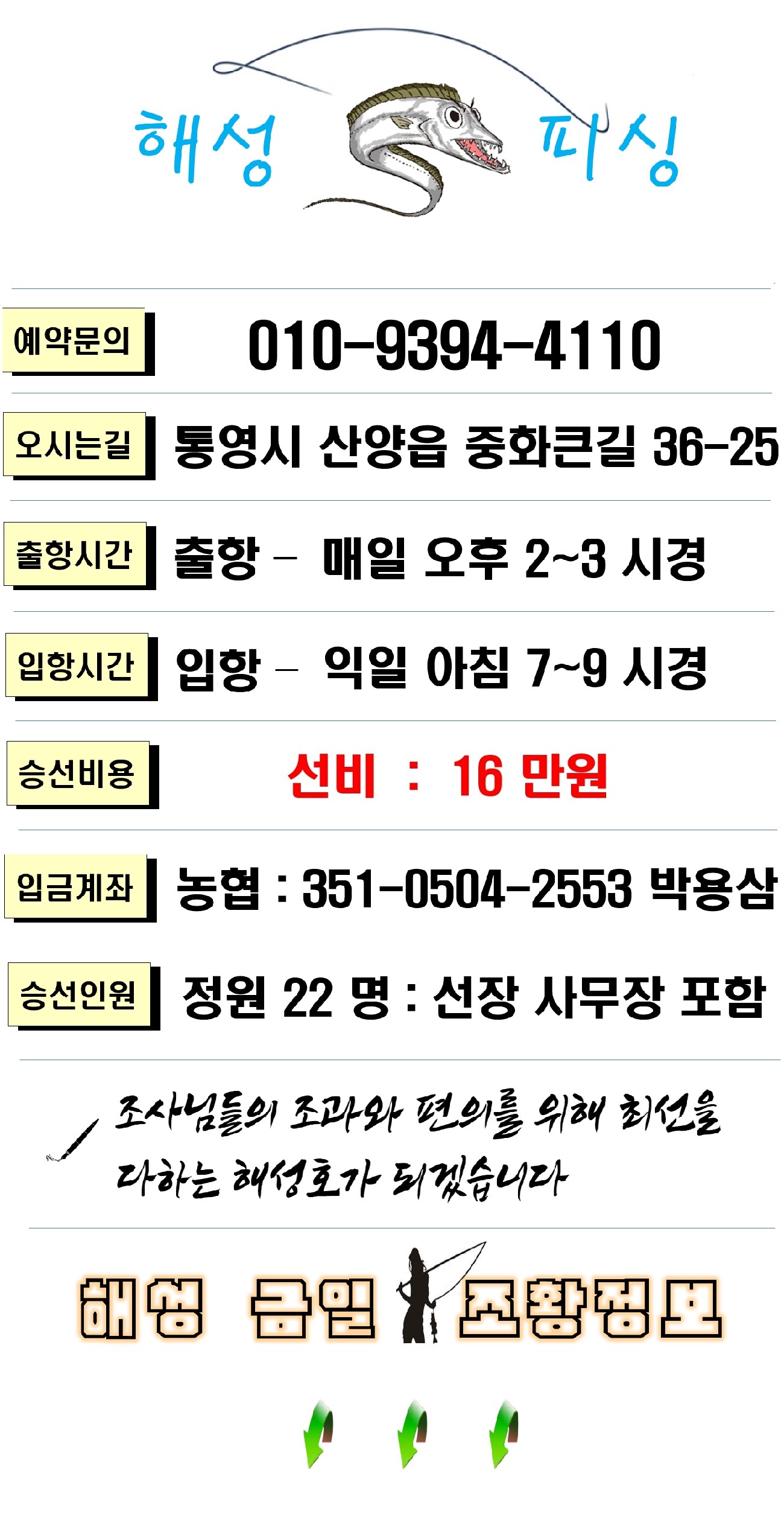 내일(수) 주간열기낚시 예약가능합니다. 06시까지 오시면 자리추첨후 출조합니다.
