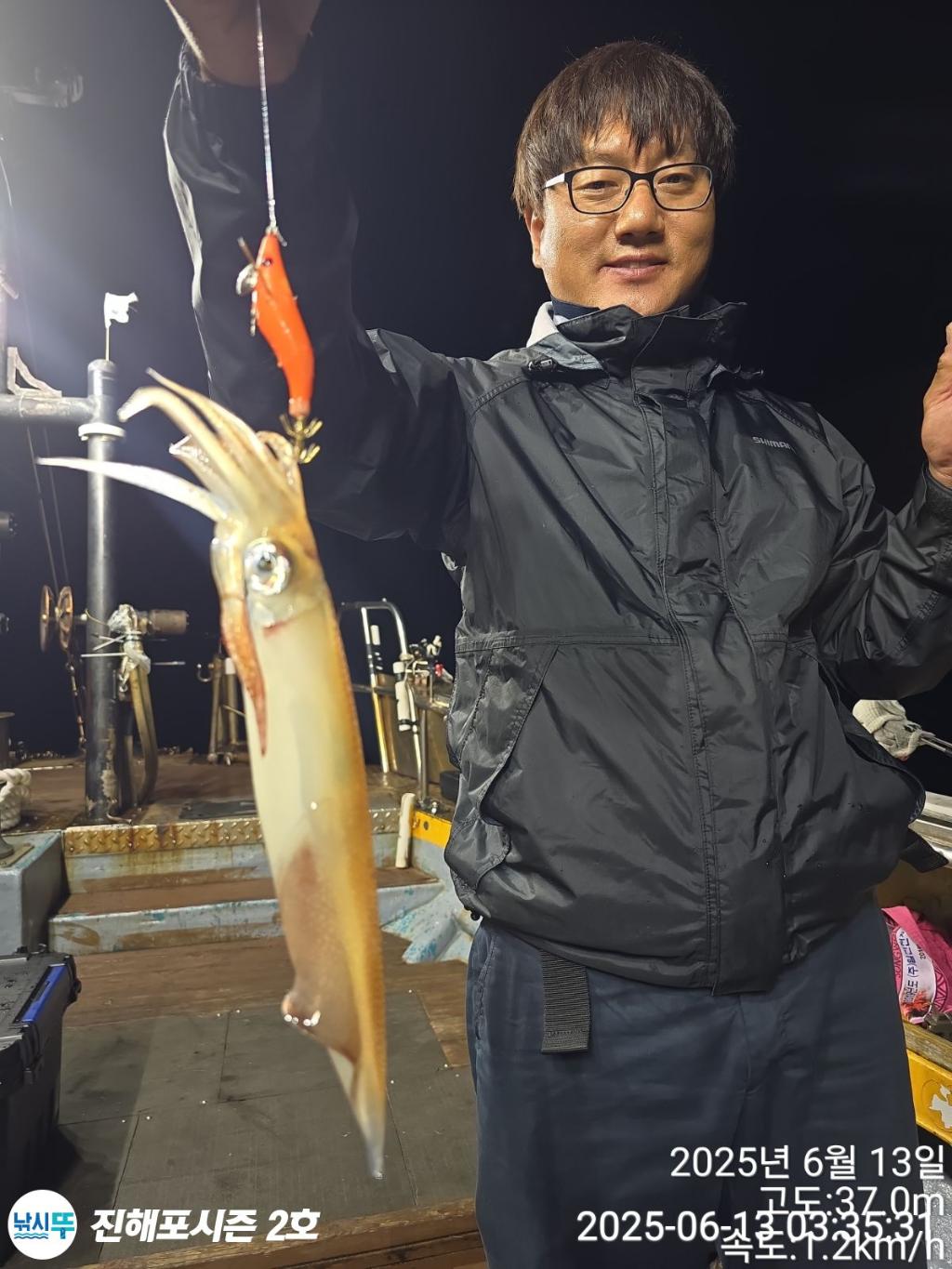 선속이 살아나면서 씨알 좋은 갑오징어가 올라옵니다.