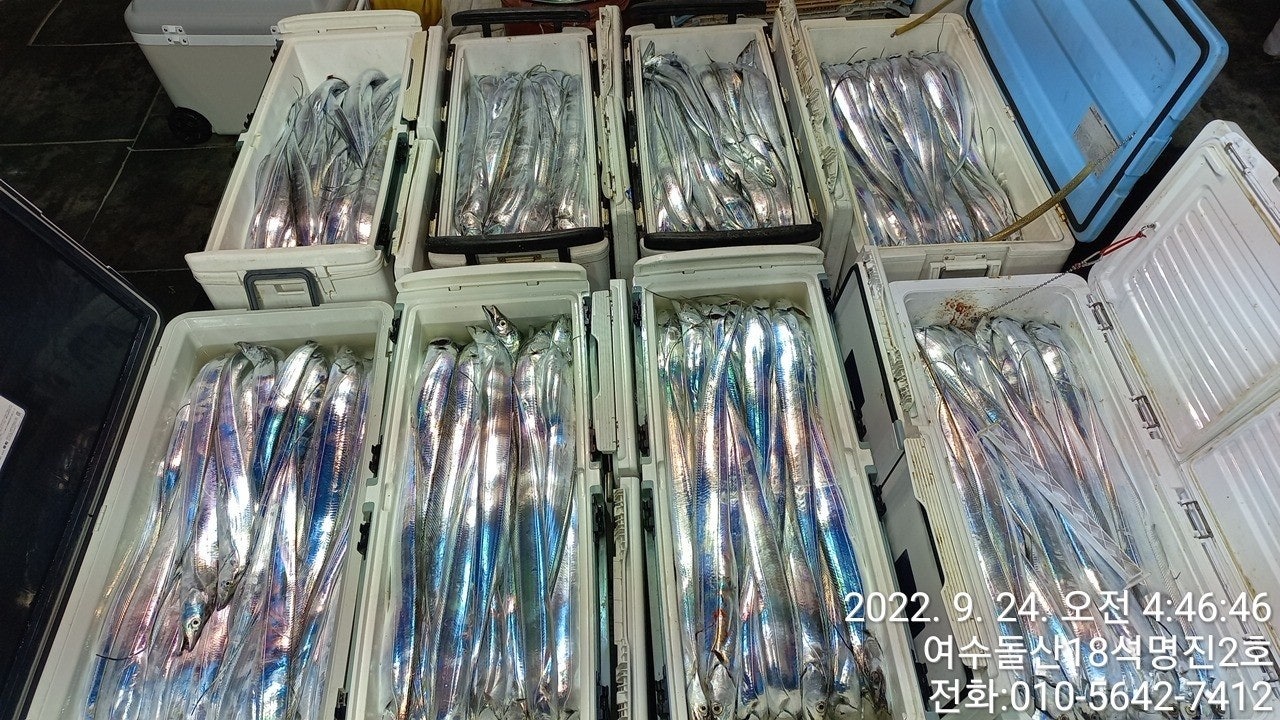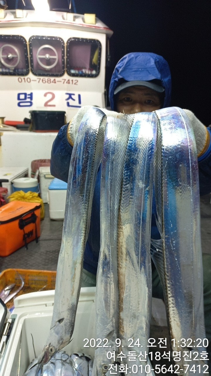 **여수신기항18석 명진2호 백도권 먼바다 은갈치 출조 조황입니다..전원 초대박 만쿨 입니다.