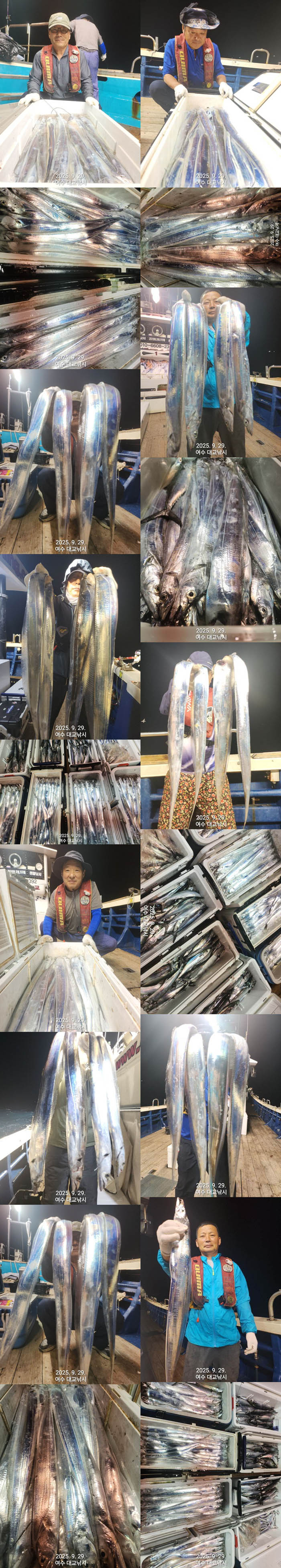 ①출조일 : 2025년 9월29일 7시 전후 입항 ②출조지 : 거문도~백도~작도 먼바다 ③물 때 : 14물~조금물 ④바다 상황 : 좋았음,,,!!! 여수 먼바다 갈치 낚시를 찾아주신 조사님을 모시고 거문도~백도~작도 먼바다 갈치 낚시여행 다녀왔습니다 ,,,!!! 여수대교낚시 밴드 가입=>https://band.us/@daegyofishing href="https:> size="4"> ![]() 여수 거문도~백도 먼바다 갈치 본격적인 갈치 시즌이 시작되었습니다,,,!!! 초보조사님들도 갈치 많이 잡는 시즌......초보조사님들 친절한 선장님 ,,사무장님께 간단하게 갈치 낚시방법 듣고 열심히 하신다면 누구나 쉽게 많은 갈치를 잡고 있으니 주저하거나 망설이지 마시고 여수 대교낚시 프라자와 함께 하시기 바랍니다,,,!!! ![]() ▶저희 대교낚시프라자는 타낚시선과 다르게 매일 출조하여 조황및 포인트 체크 하고 있어 타 낚시선보다 더 좋은 조황으로 입항하고 있습니다,,,!!! ▶짝대기,,,어부,,,갈치잡아 파시는 분들 안 태우는 여수 대교낚시 프라자 대교1호 대교2호와 함께 하시기 바랍니다,,,,!!! ◆◆◆ 저희 대교낚시프라자는 불친절한 선장님 사무장님 없고 안전 친철을 최우선으로 하는 선장님 사무장님과 타낚시점 타선박과 비교할수 없는 풍부한 경험을 바탕으로 전국 최고 갈치 조황을 만들고 있는 여수 대교낚시프라자와 함께 하시기 바랍니다 ![]() 오늘 출조 하신 조사님들 고생 많으셨습니다,,,!!! ◆ 출조 문의 ==> 010-6608-2392,,,,,예약은 필수 size="6"> ![]() |