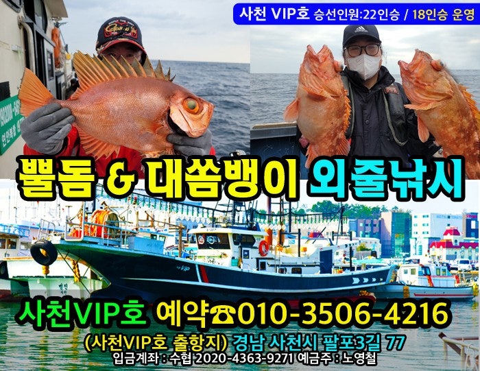 뿔돔, 대형쏨뱅이, 왕쏨뱅이, 왕뿔돔, 심해외줄, 외줄낚시, 심해열기, 심해쏨뱅이 남해외줄낚시, 다금바리, 붉바리, 능성어, 심해외줄낚시, 심해낚시, 열기낚시, 심해쏨뱅이, 심해선상낚시, 사천VIP호, 사천심해열기, 사천심해외줄