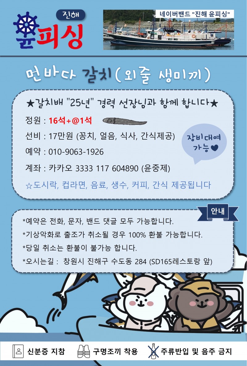 진해윤피싱, 윤피싱, 갈치낚시, 진해갈치낚시, 갈치조황, 먼바다갈치, 진해갈치, 갈치생미끼, 갈치외줄, 갈치선상낚시