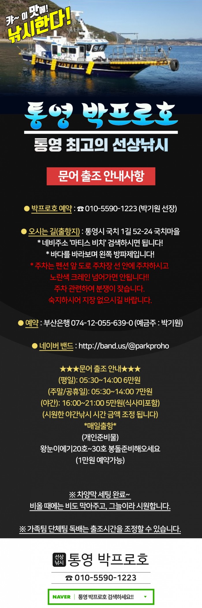 ● 박프로호 예약 ☎010-5590-1223 (박기원 선장)