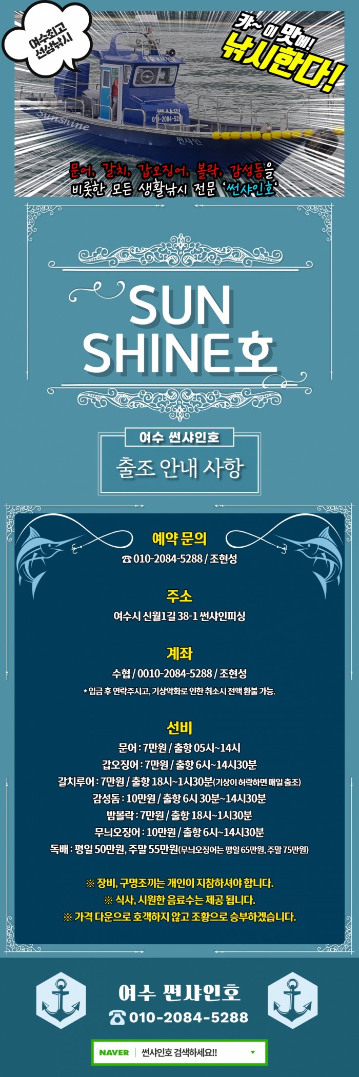 선단배 이용하실 조사님은 유선으로 문의 주세요~~