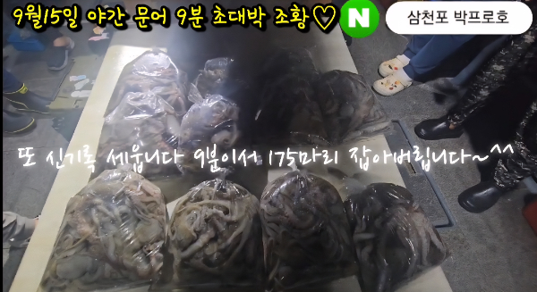 9분 175마리 !! 사이즈 굿굿 또 갱신합니다 15일 야간문어 믿음의 박프로호