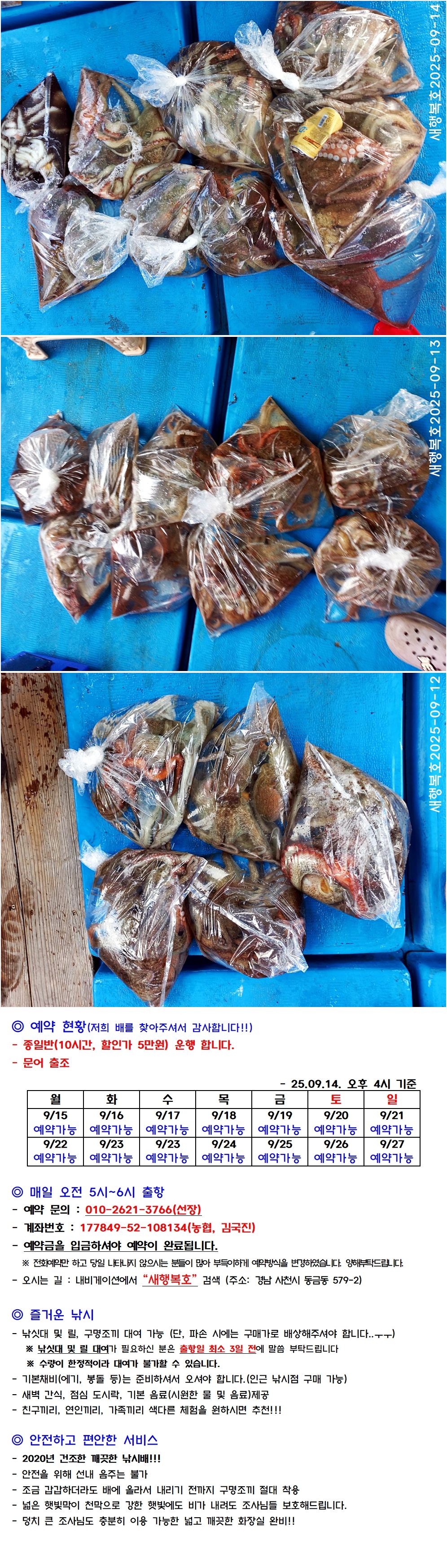 안녕하세요. 삼천포 문어 낚시배 새행복호입니다.