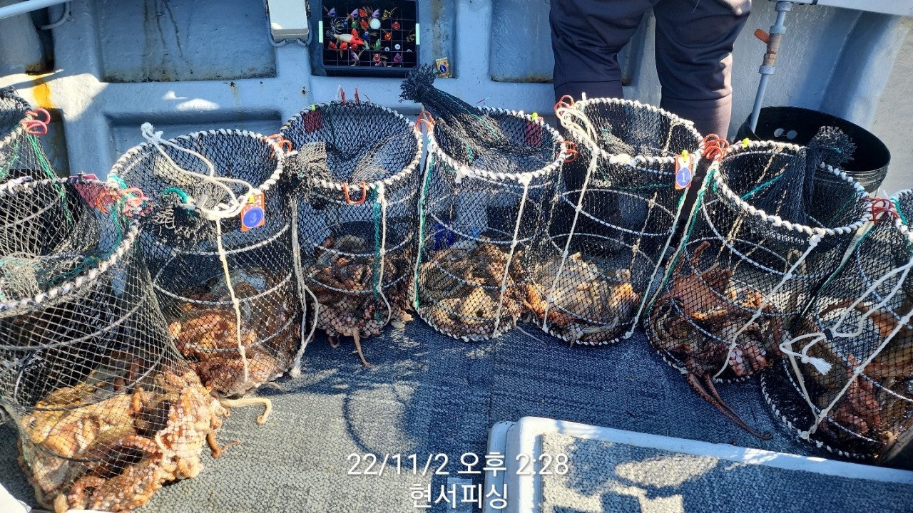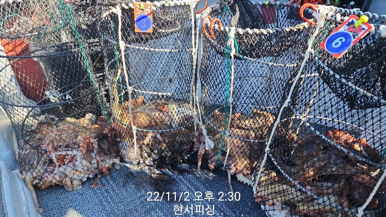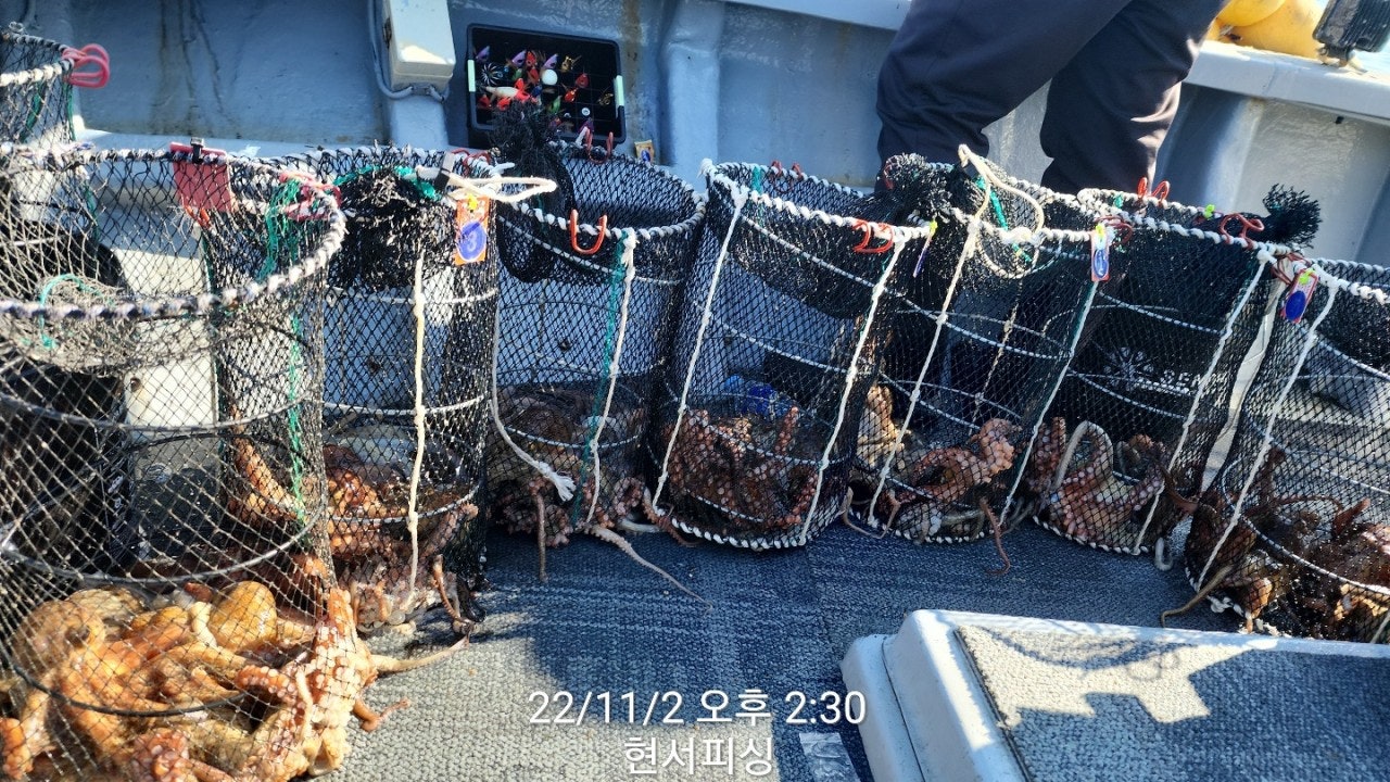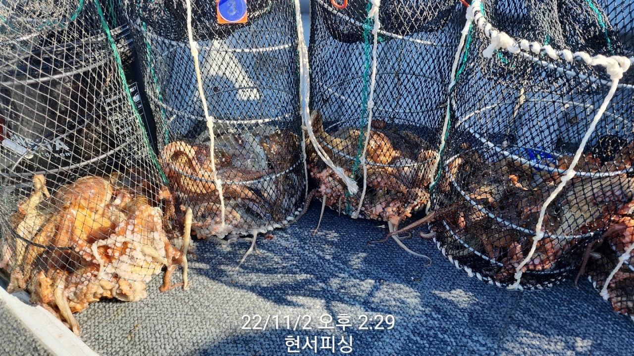 11월 2일(수요일) 통영 원도권 돌문어 냉장고포인트 현서피싱 조황입니다.