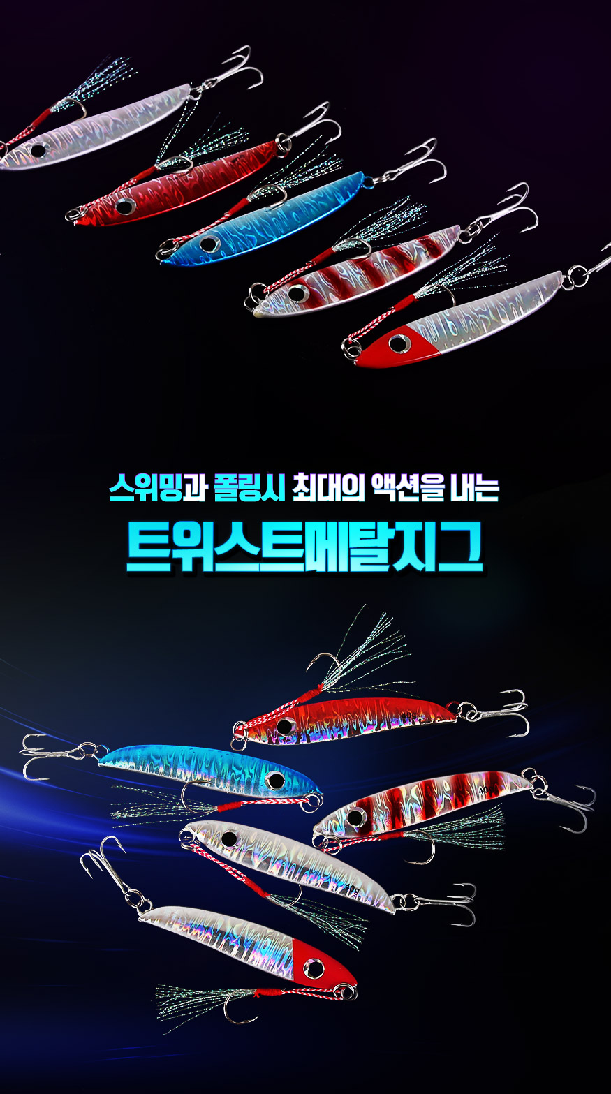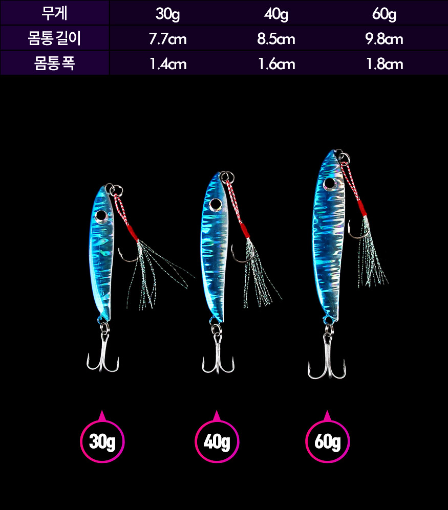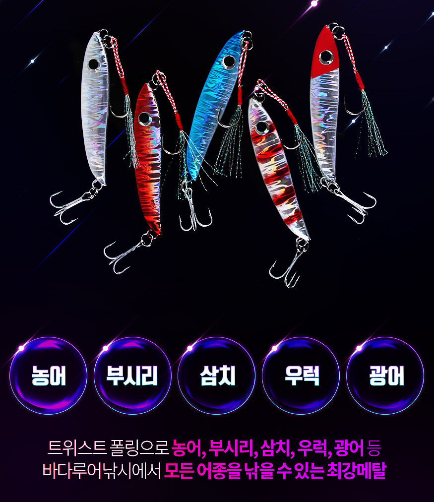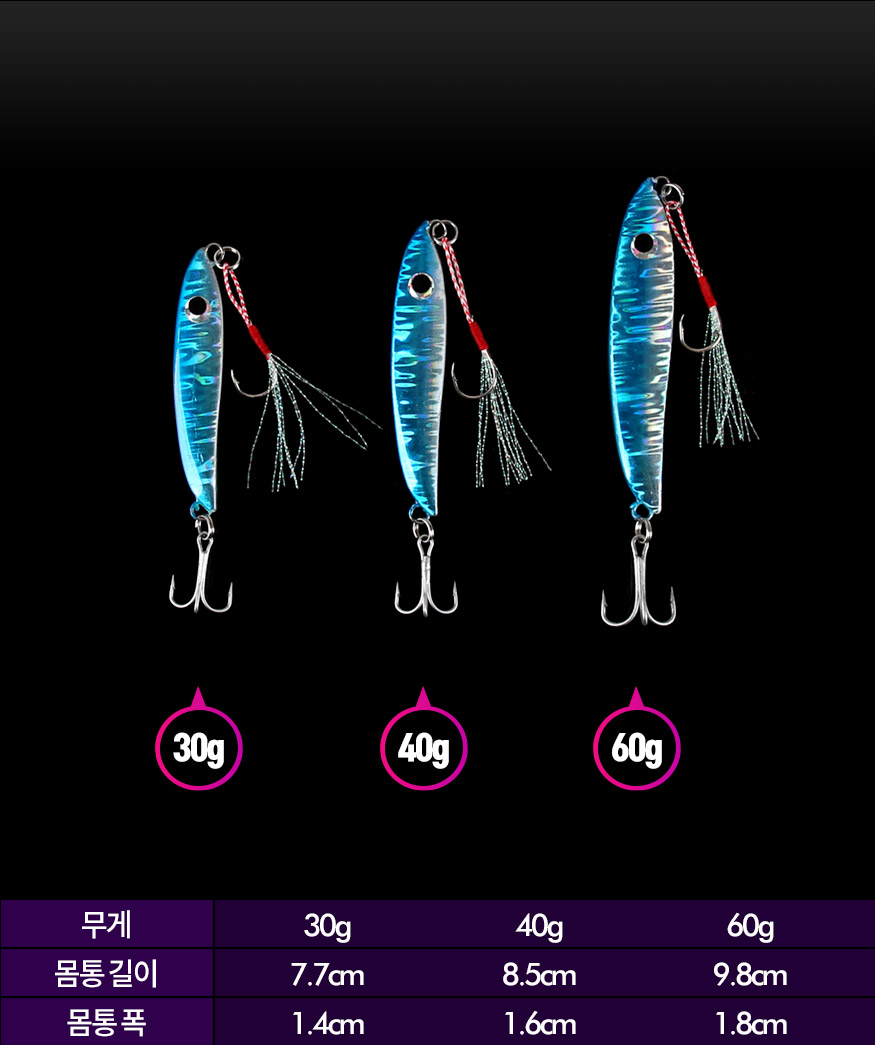 ★머털낚시★ [반값할인] 트위스트 메탈지그(30g,40g,60g)-홀로그램 바디-